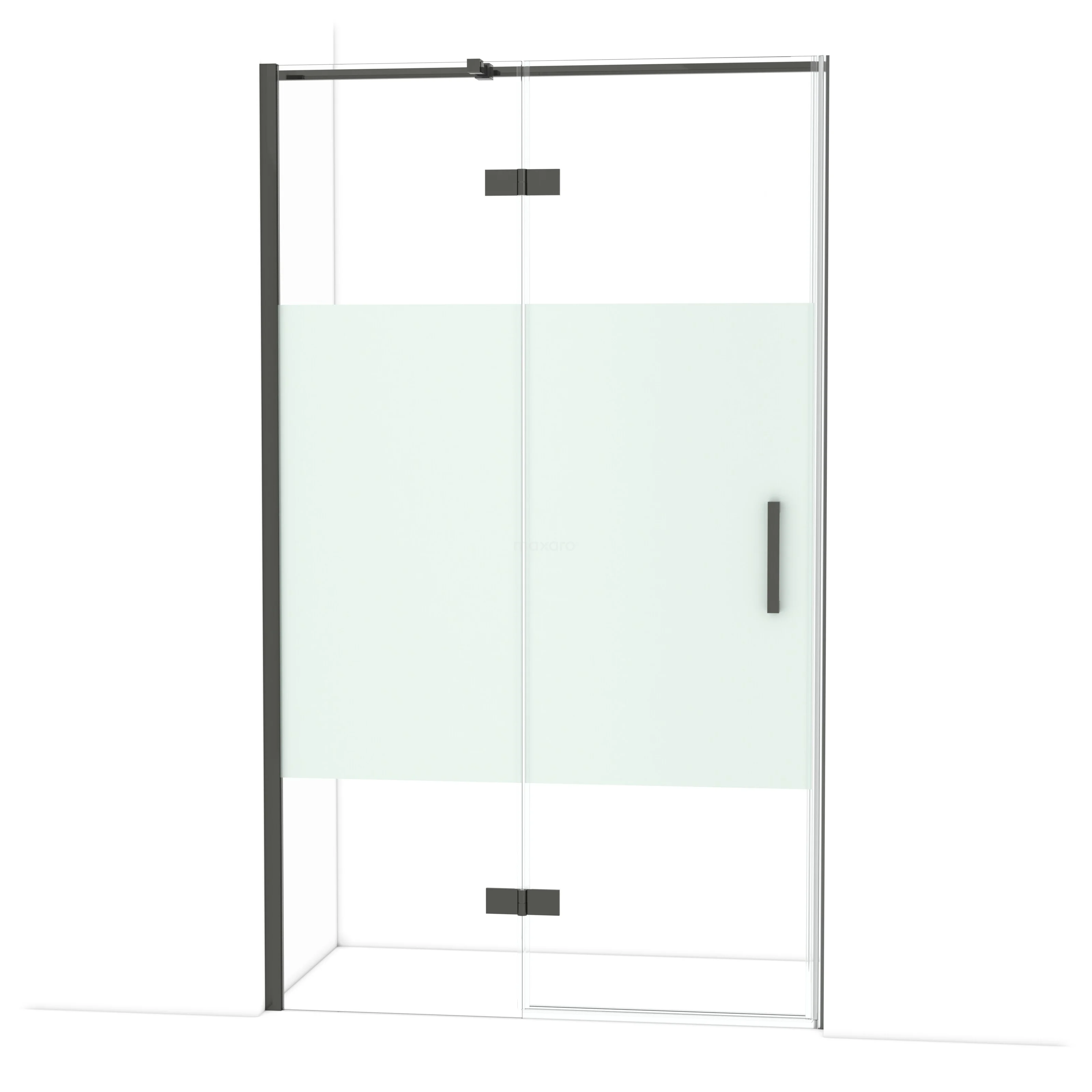 Diamond Duschtür | 120 cm Schwarzchrom Klar mit matter Streifen Drehtür