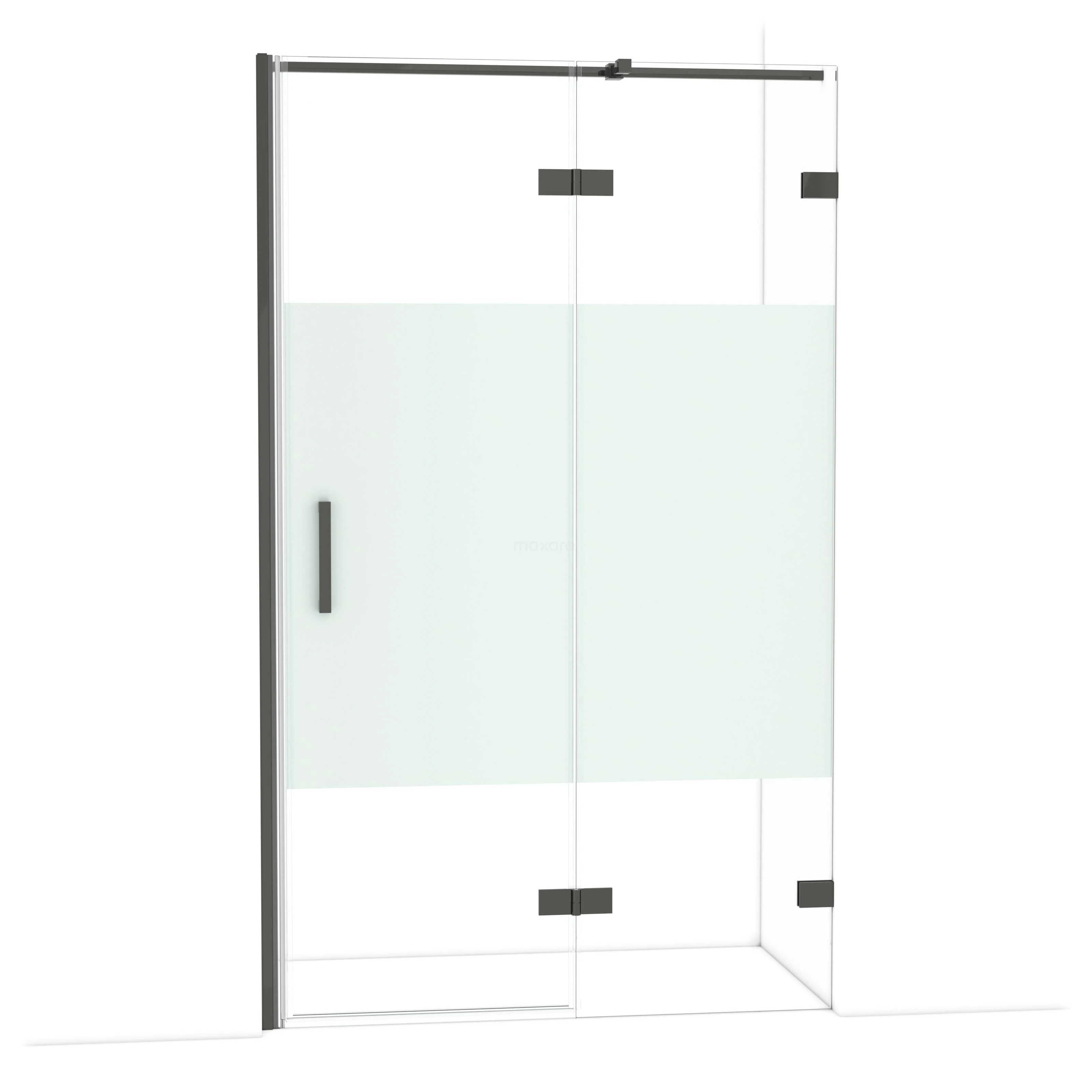 Diamond Duschtür | 120 cm Schwarzchrom Klar mit matter Streifen Drehtür