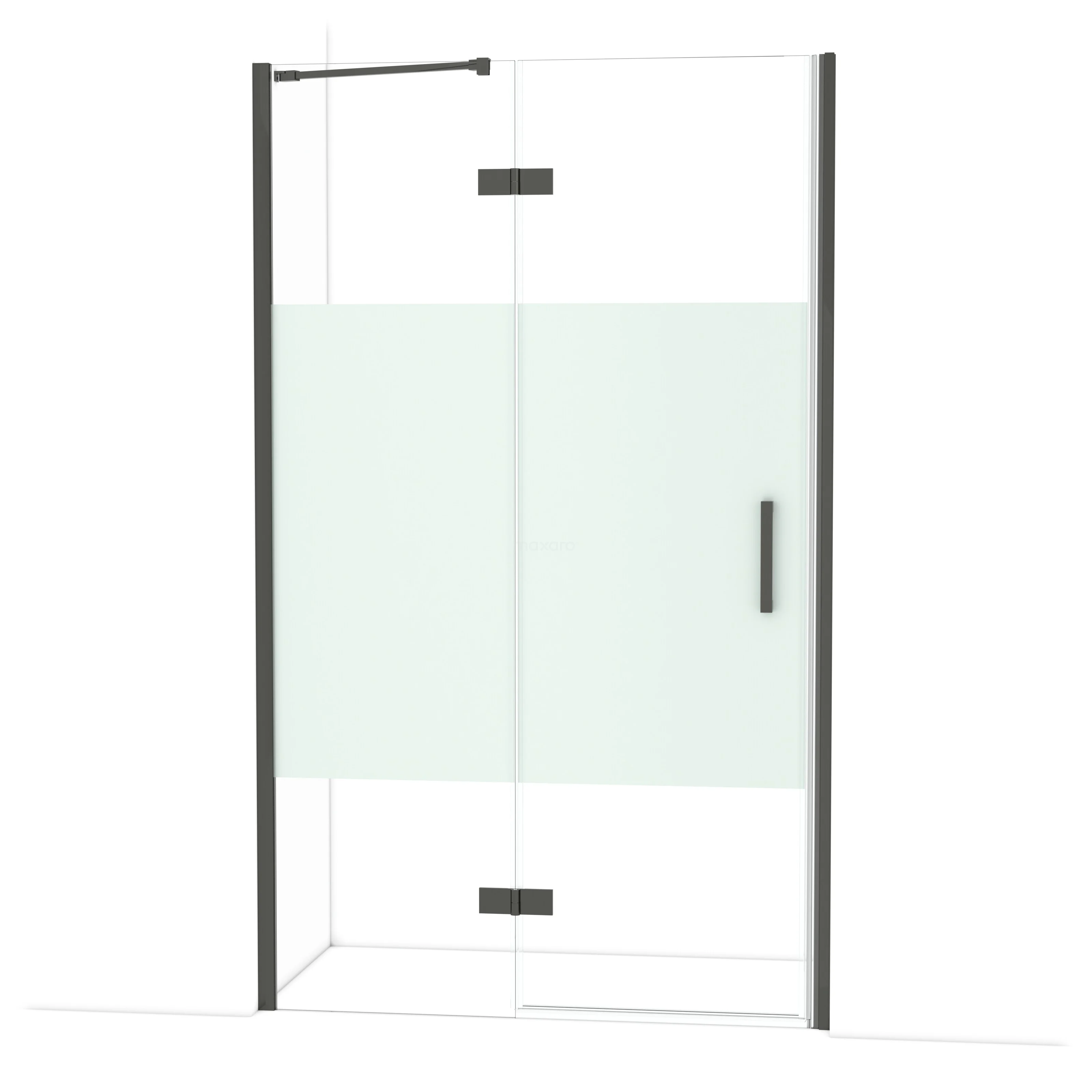 Diamond Duschtür | 120 cm Schwarzchrom Klar mit matter Streifen Drehtür