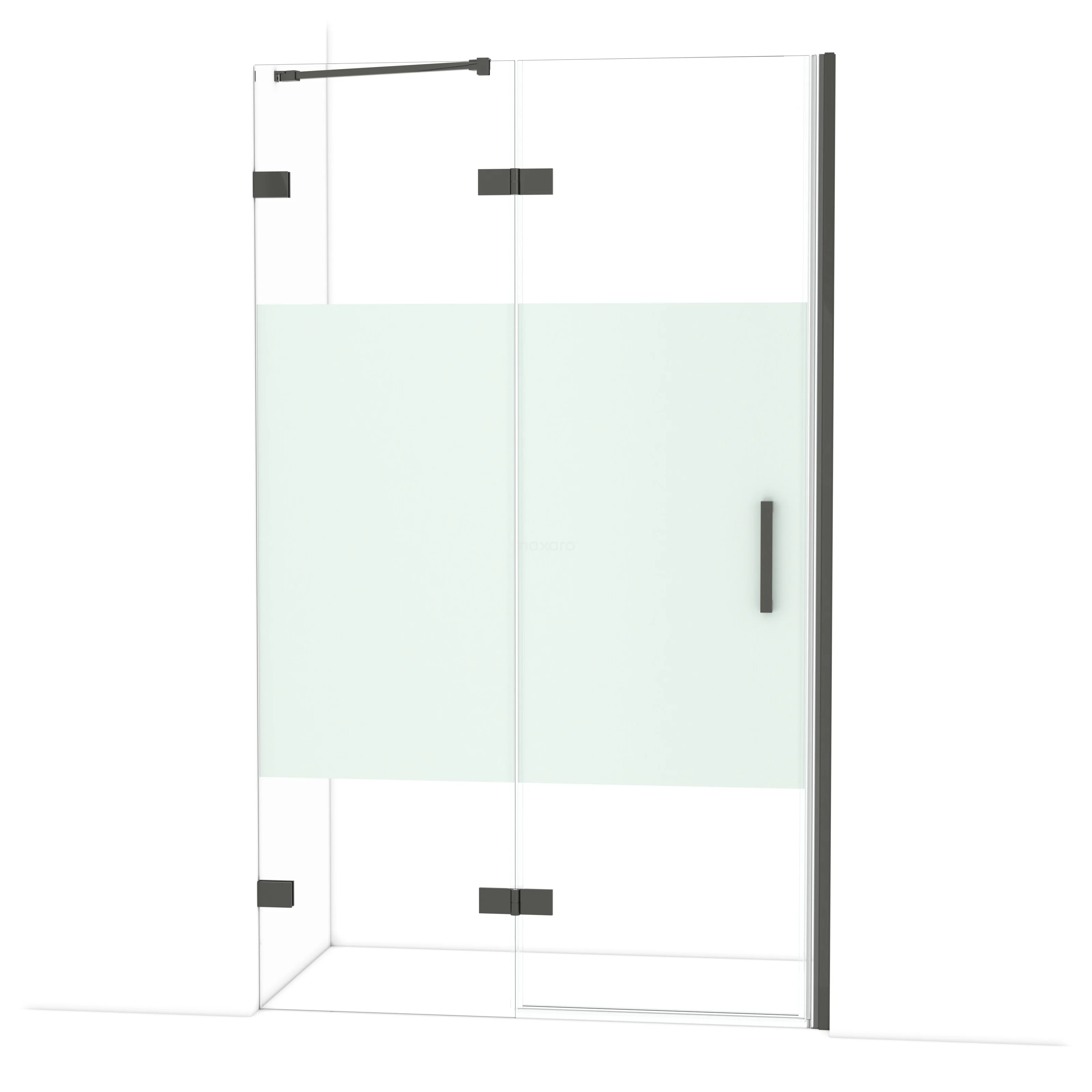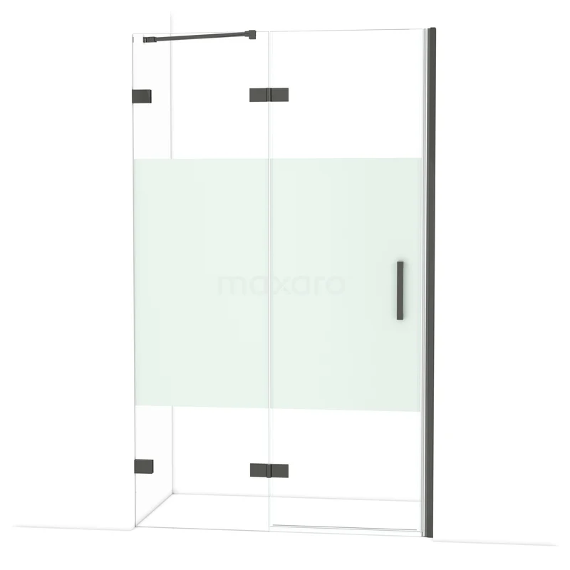 Diamond Duschtür | 120 cm Schwarzchrom Klar mit matter Streifen Drehtür