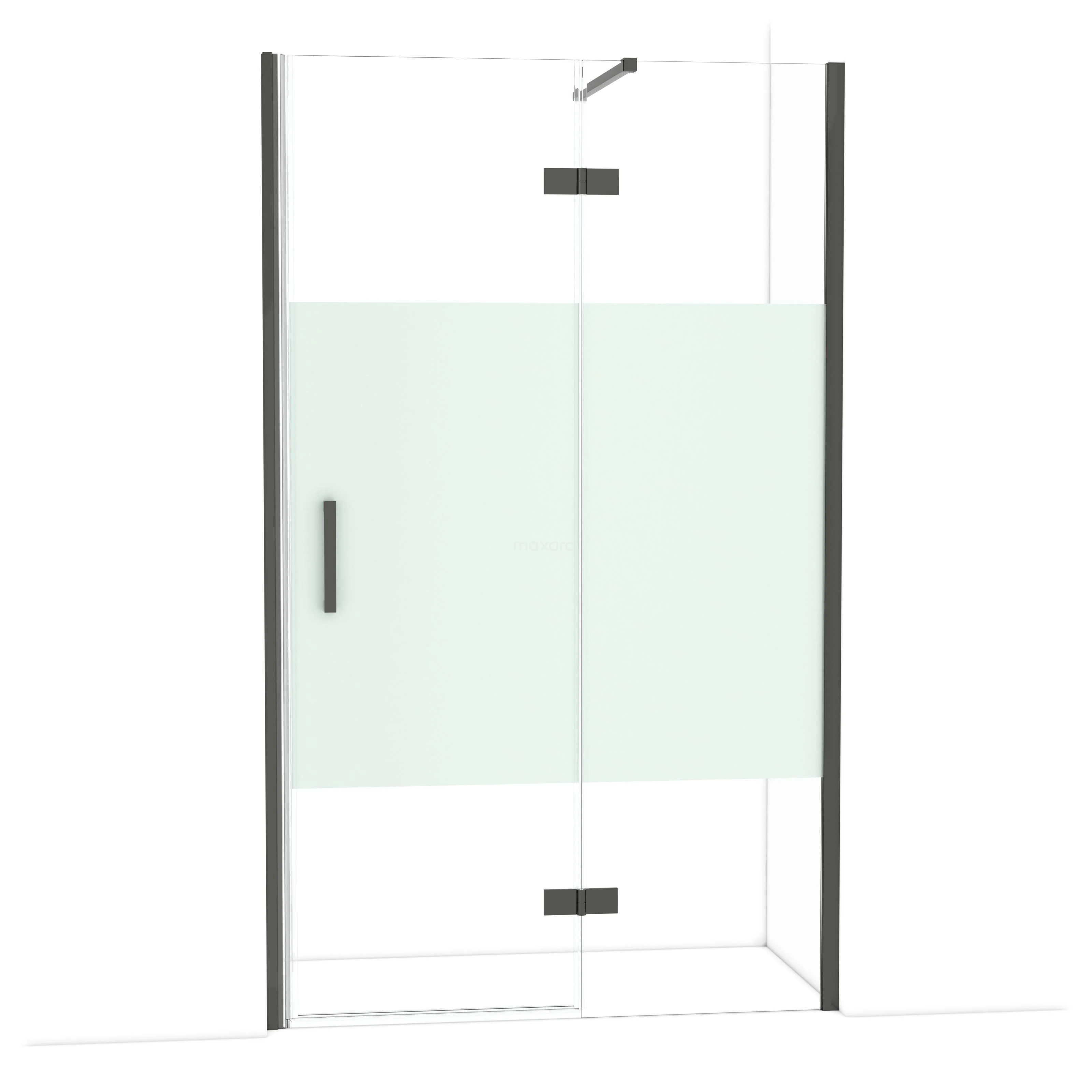 Diamond Duschtür | 120 cm Schwarzchrom Klar mit matter Streifen Drehtür