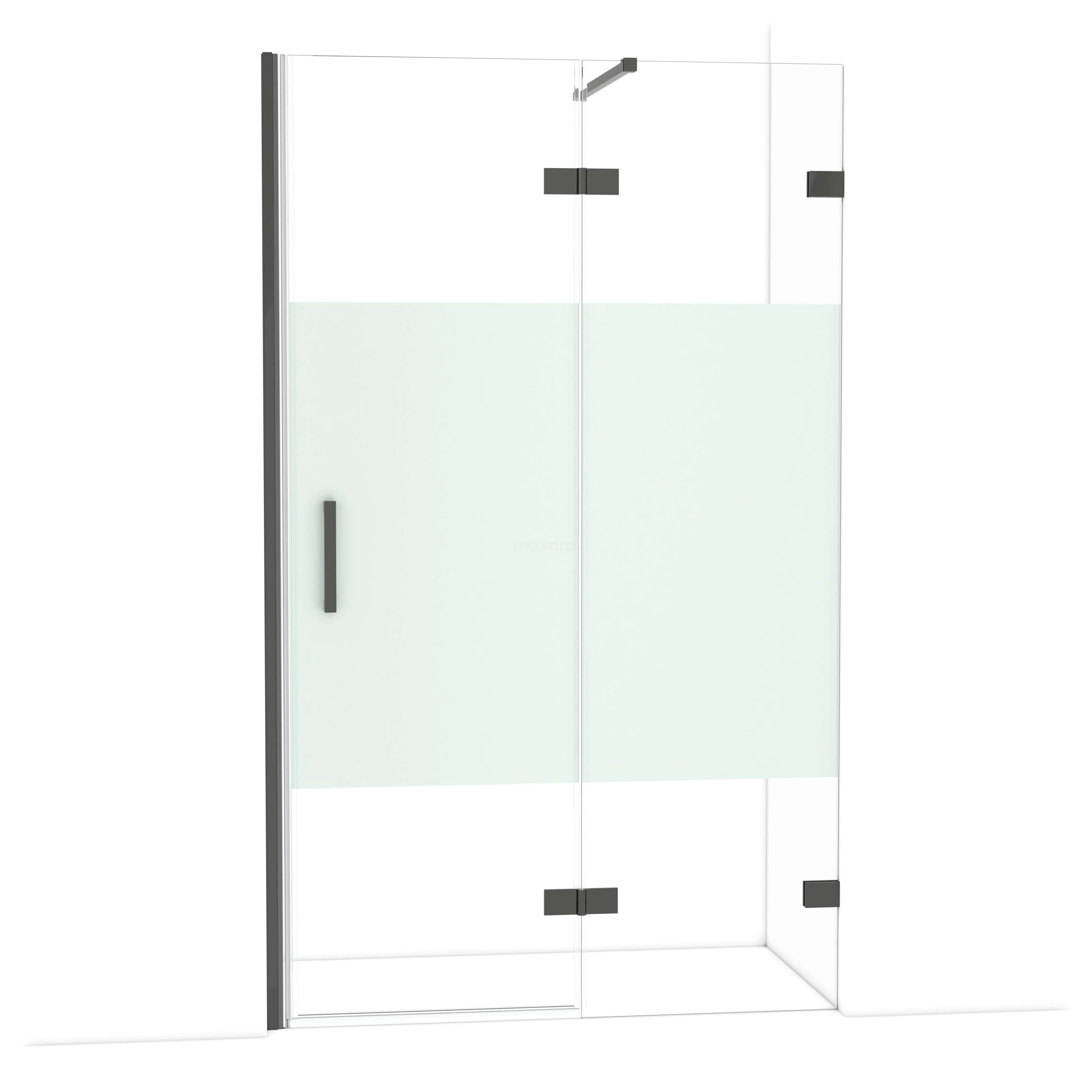 Diamond Duschtür | 120 cm Schwarzchrom Klar mit matter Streifen Drehtür