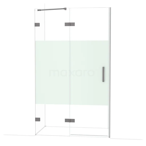 Diamond Duschtür | 120 cm Schwarzes Metall Klar mit matter Streifen Drehtür