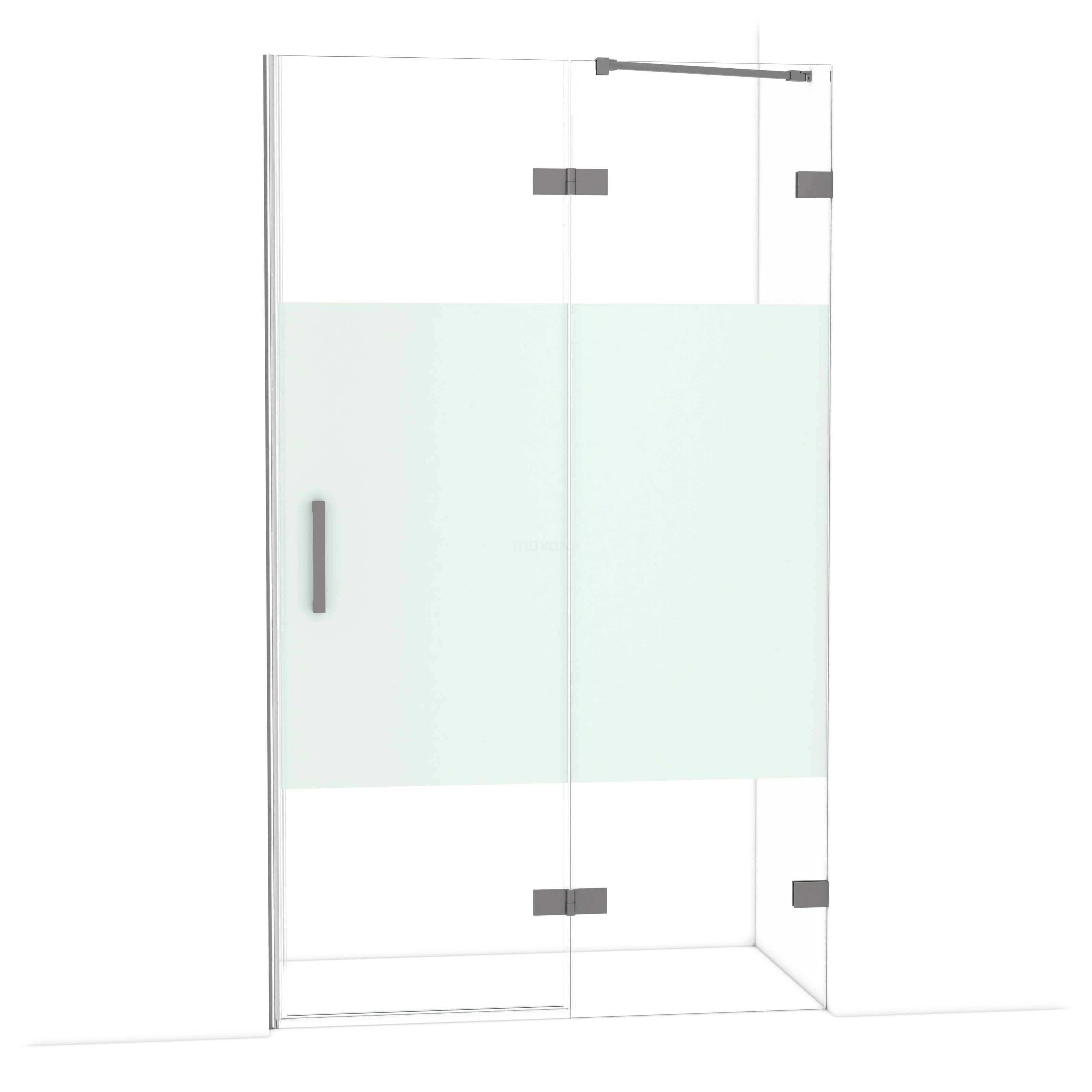 Diamond Duschtür | 120 cm Schwarzes Metall Klar mit matter Streifen Drehtür