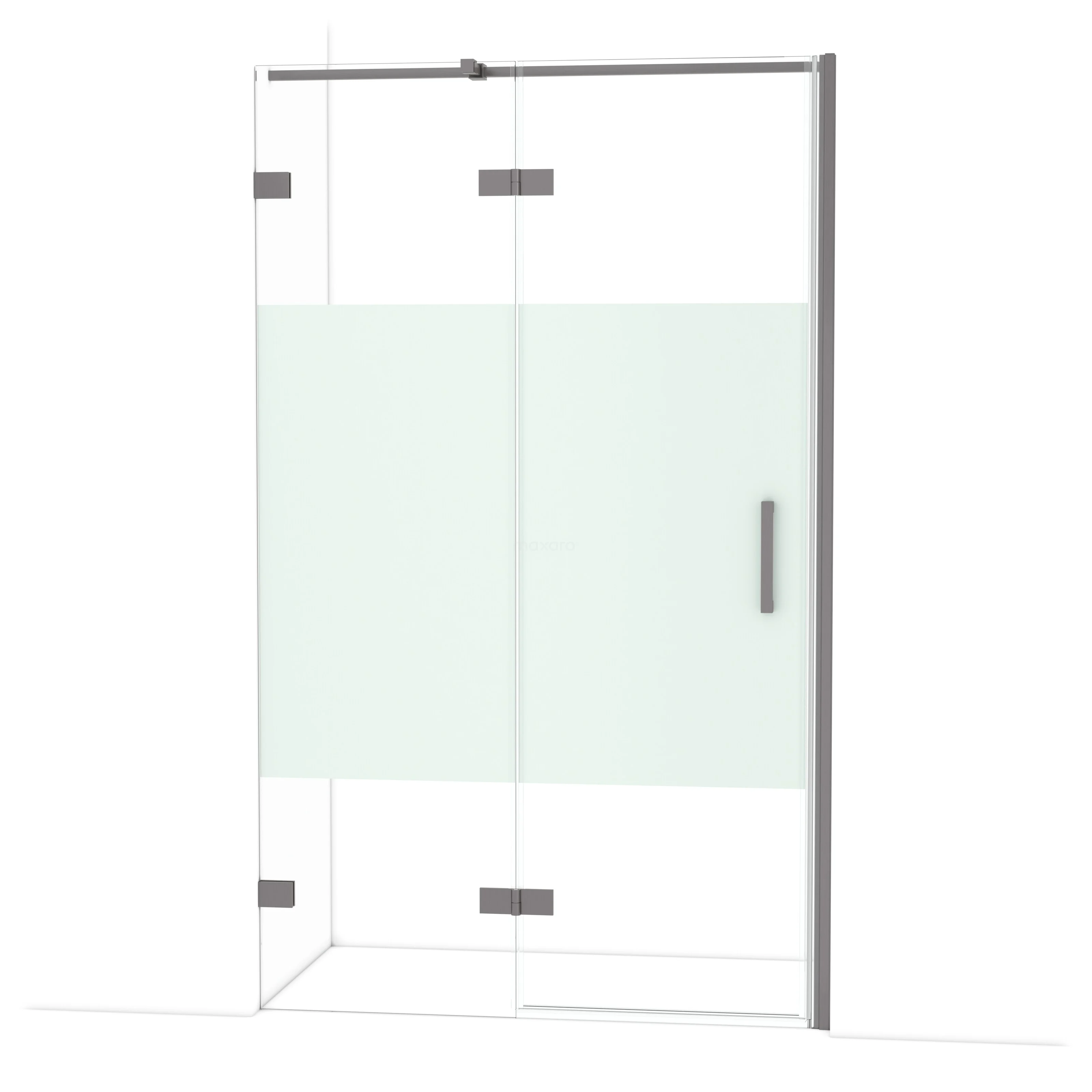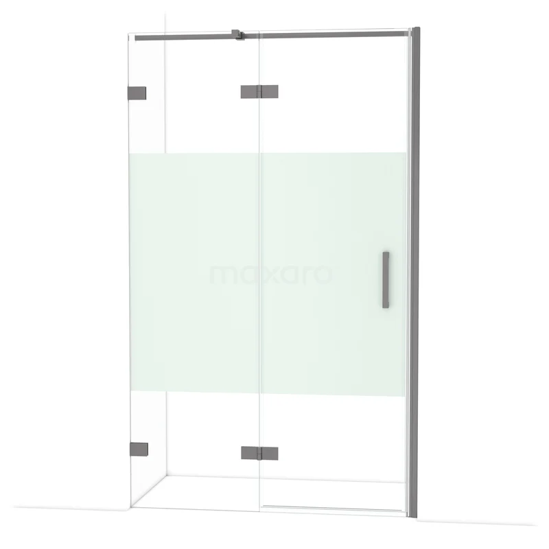 Diamond Duschtür | 120 cm Schwarzes Metall Klar mit matter Streifen Drehtür