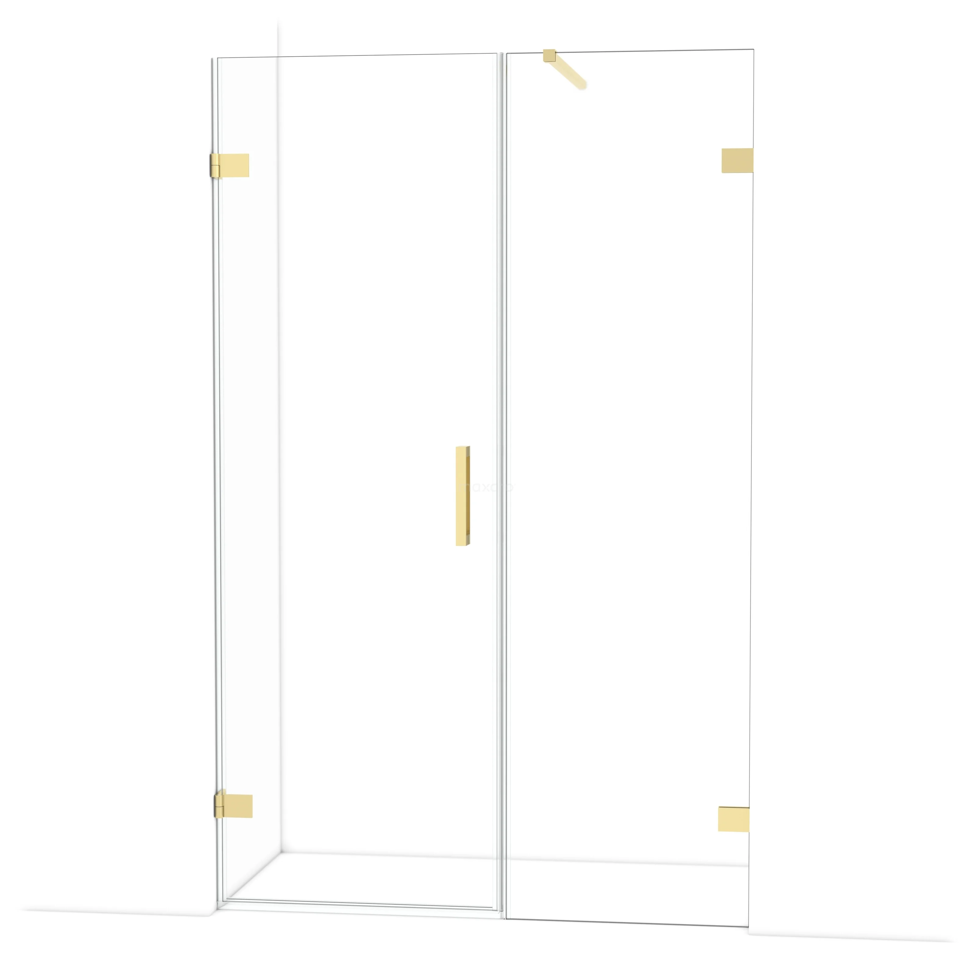 Diamond Duschtür | 125 cm Glänzendes Hellgold Klarglas Drehtür