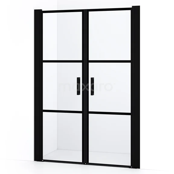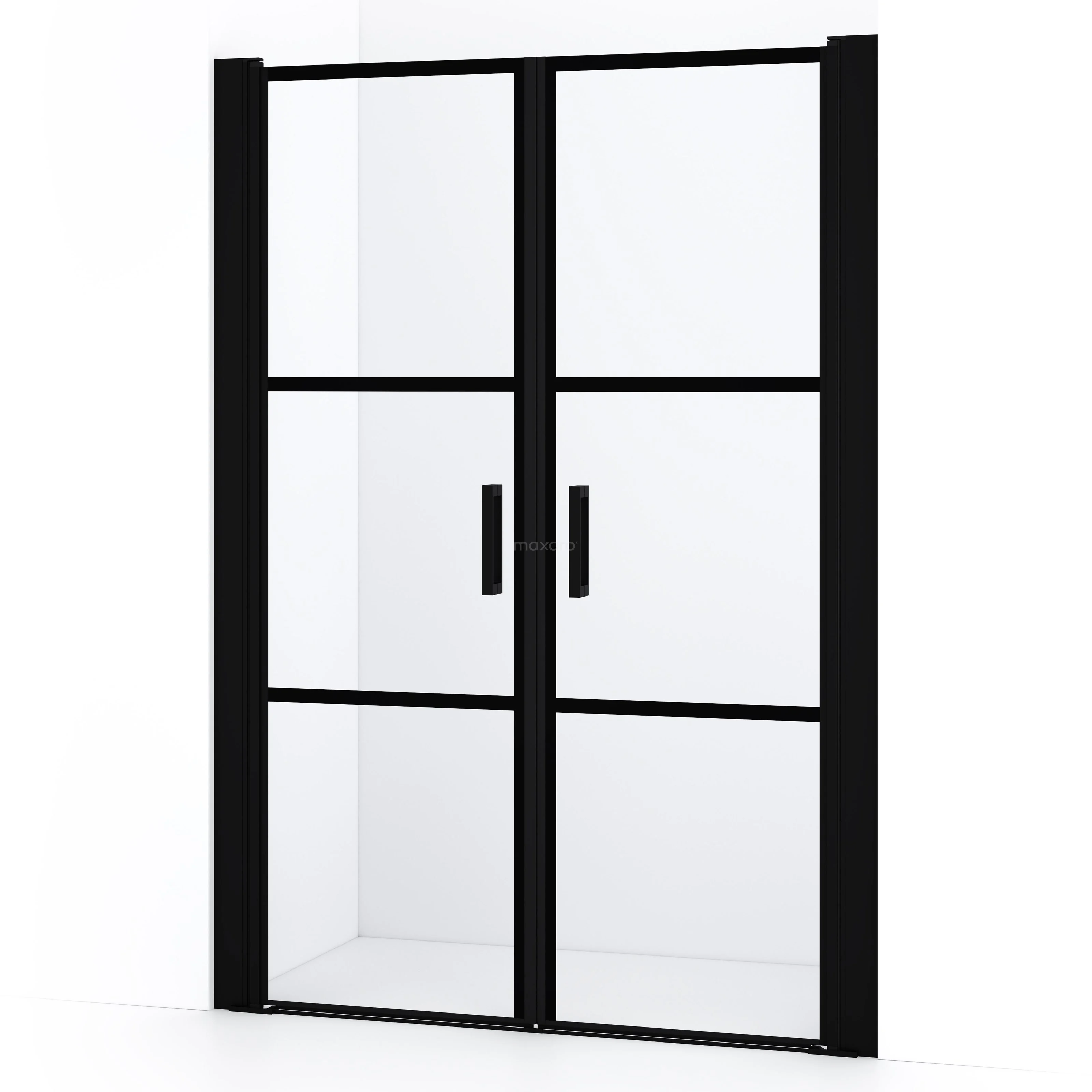 Diamond Duschtür | 130 cm Matt Schwarz Klar mit 4 schwarzen Streifen Pendeltür
