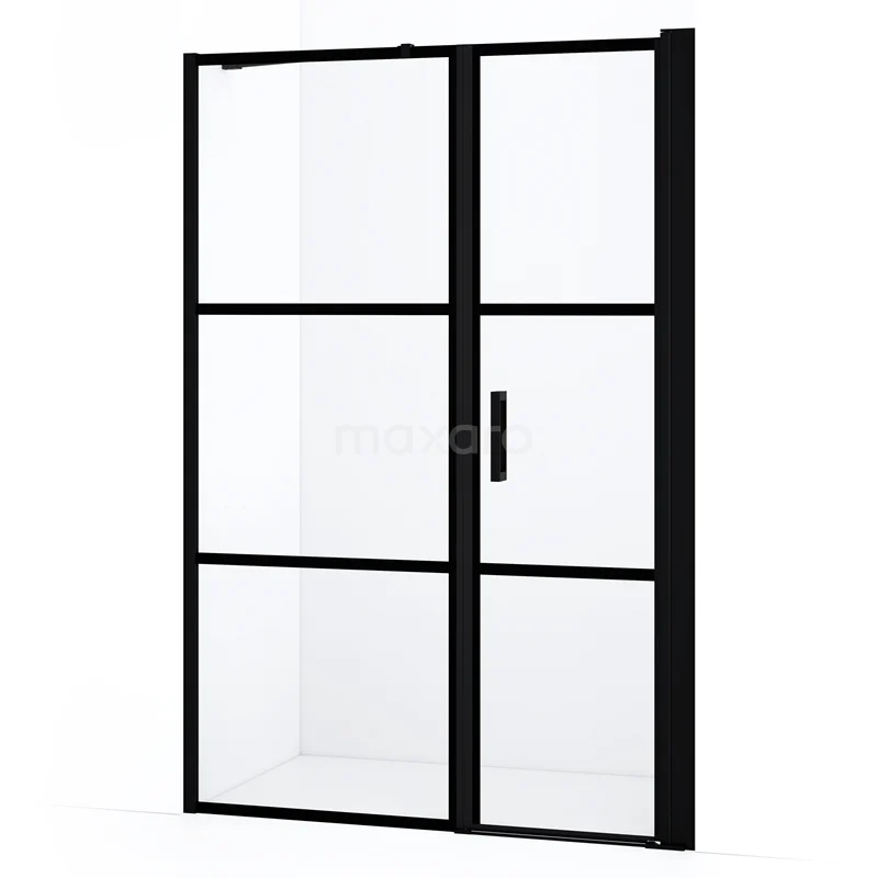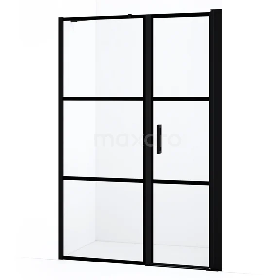 Diamond Duschtür | 140 cm Matt Schwarz Klar mit 4 schwarzen Streifen Drehtür