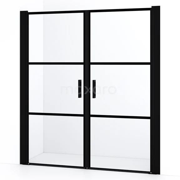 Diamond Duschtür | 150 cm Matt Schwarz Klar mit 4 schwarzen Streifen Pendeltür