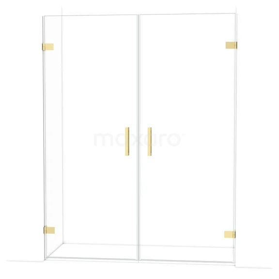 Die 155 cm lange Drehtür von Diamond ist ideal für den Abschluss Ihrer Duschnische. Sie hat ein raffiniertes und luxuriöses Design in glänzendem Hellgold und verfügt über hochwertige Wandscharniere und einen vertikalen Griff. Das Klarglas sorgt für ein großzügiges Raumgefühl. Die Duschtür hat eine feste Größe von 155,5 cm.