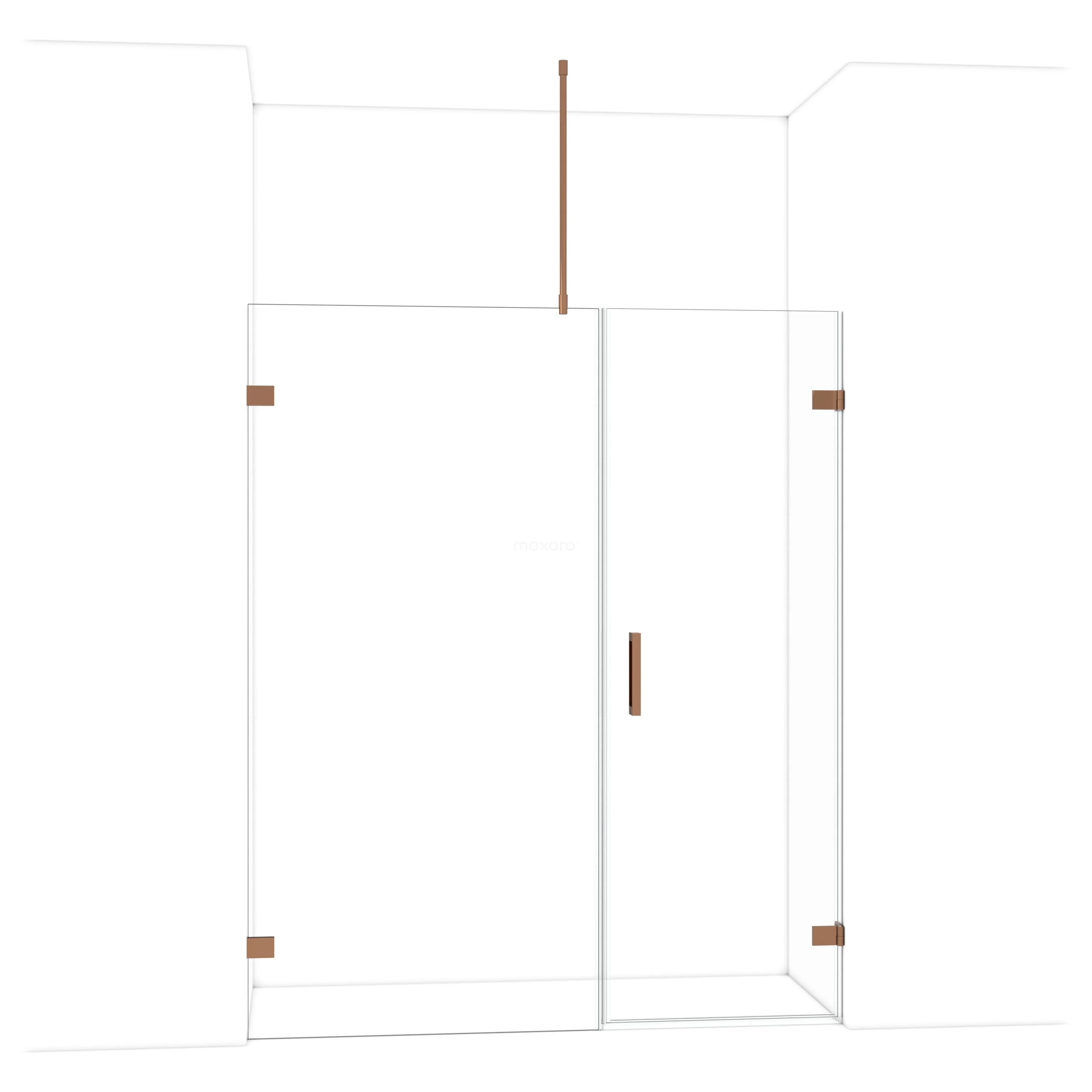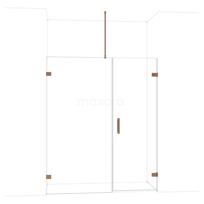 Die 165 cm lange Drehtür Diamond ist ideal zum Abschließen Ihres Duschbereichs. Sie hat ein markantes Design aus glänzendem Kupfer und verfügt über hochwertige Wandscharniere und einen vertikalen Griff. Das Klarglas sorgt für ein großzügiges Raumgefühl. Die Verstellbarkeit macht es einfach, die Duschtür zu montieren. Die Gesamtbreite ist von 165,6 bis 165,9 cm verstellbar.