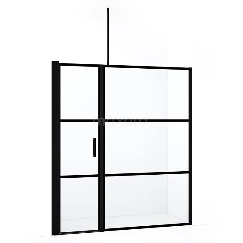 Diamond Duschtür | 170 cm Matt Schwarz Klar mit 4 schwarzen Streifen Drehtür