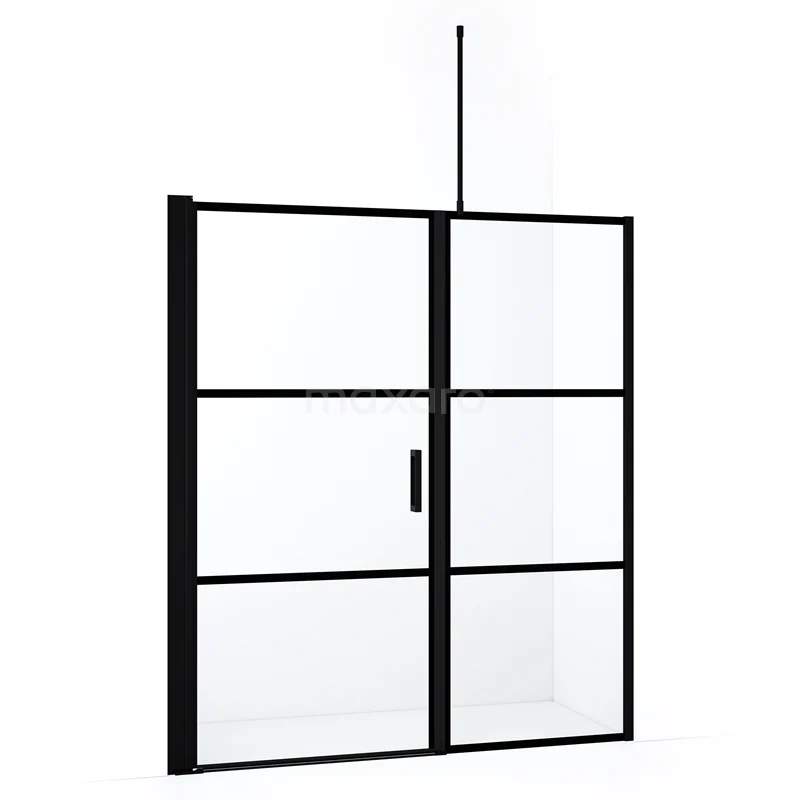 Diamond Duschtür | 170 cm Matt Schwarz Klar mit 4 schwarzen Streifen Drehtür