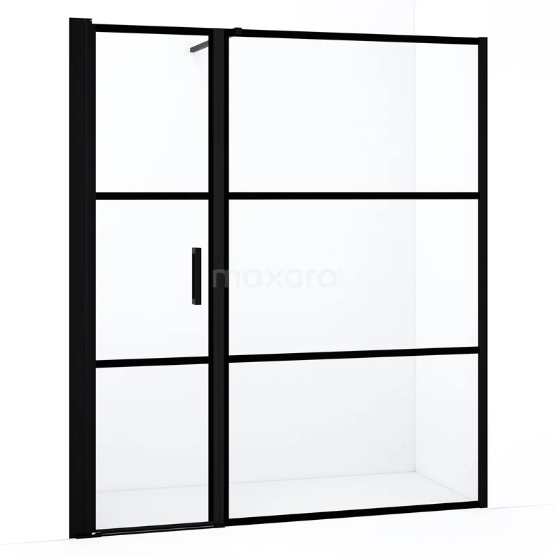 Diamond Duschtür | 180 cm Matt Schwarz Klar mit 4 schwarzen Streifen Drehtür