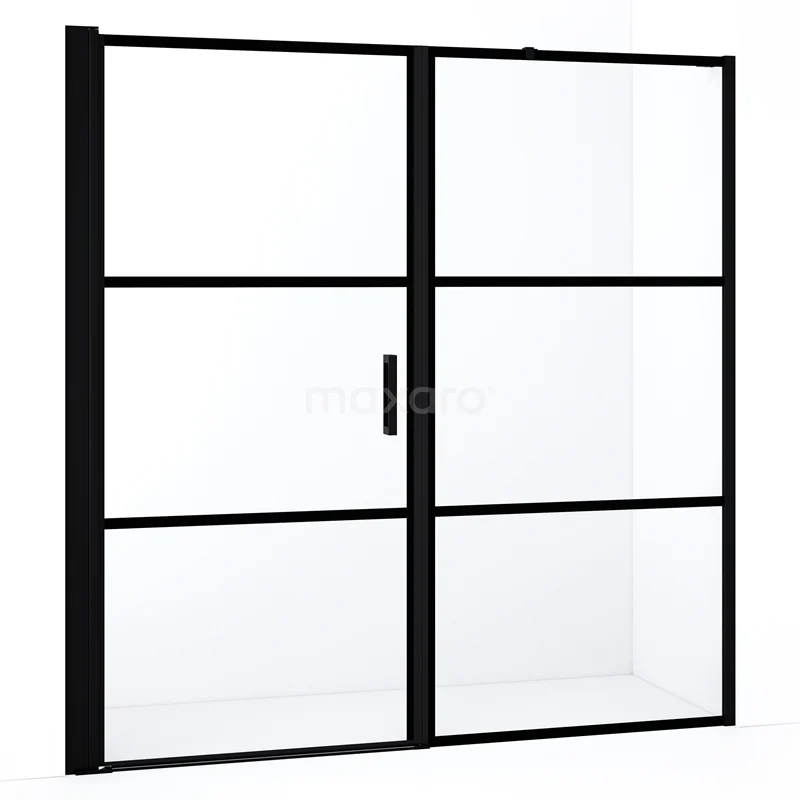 Diamond Duschtür | 180 cm Matt Schwarz Klar mit 4 schwarzen Streifen Drehtür