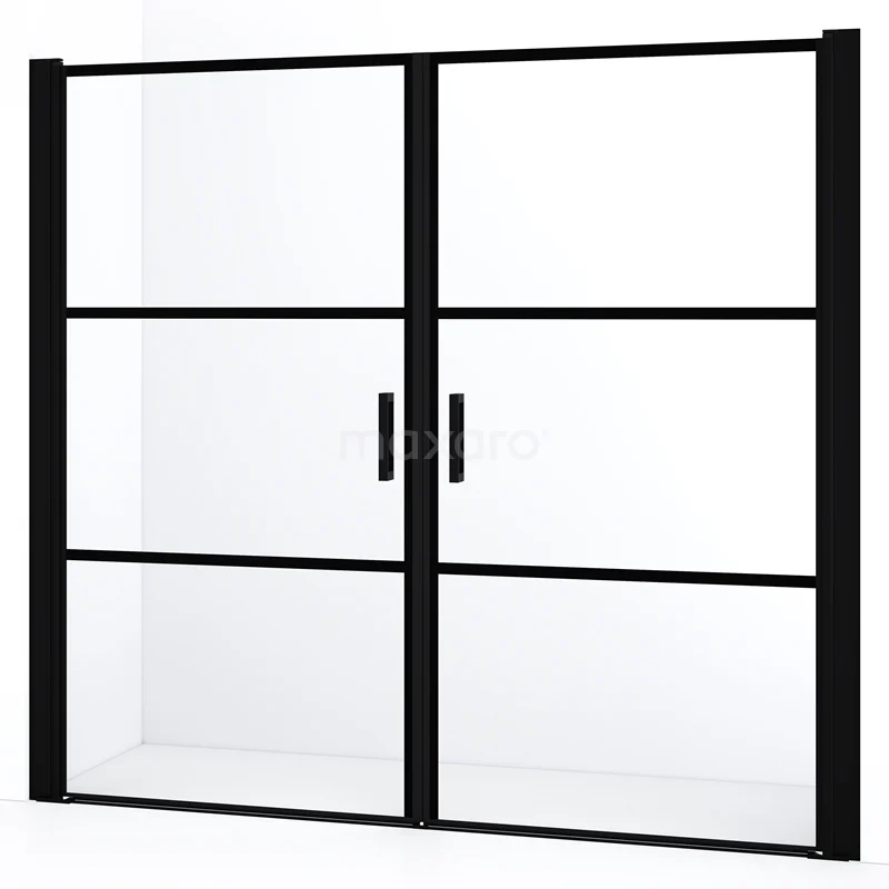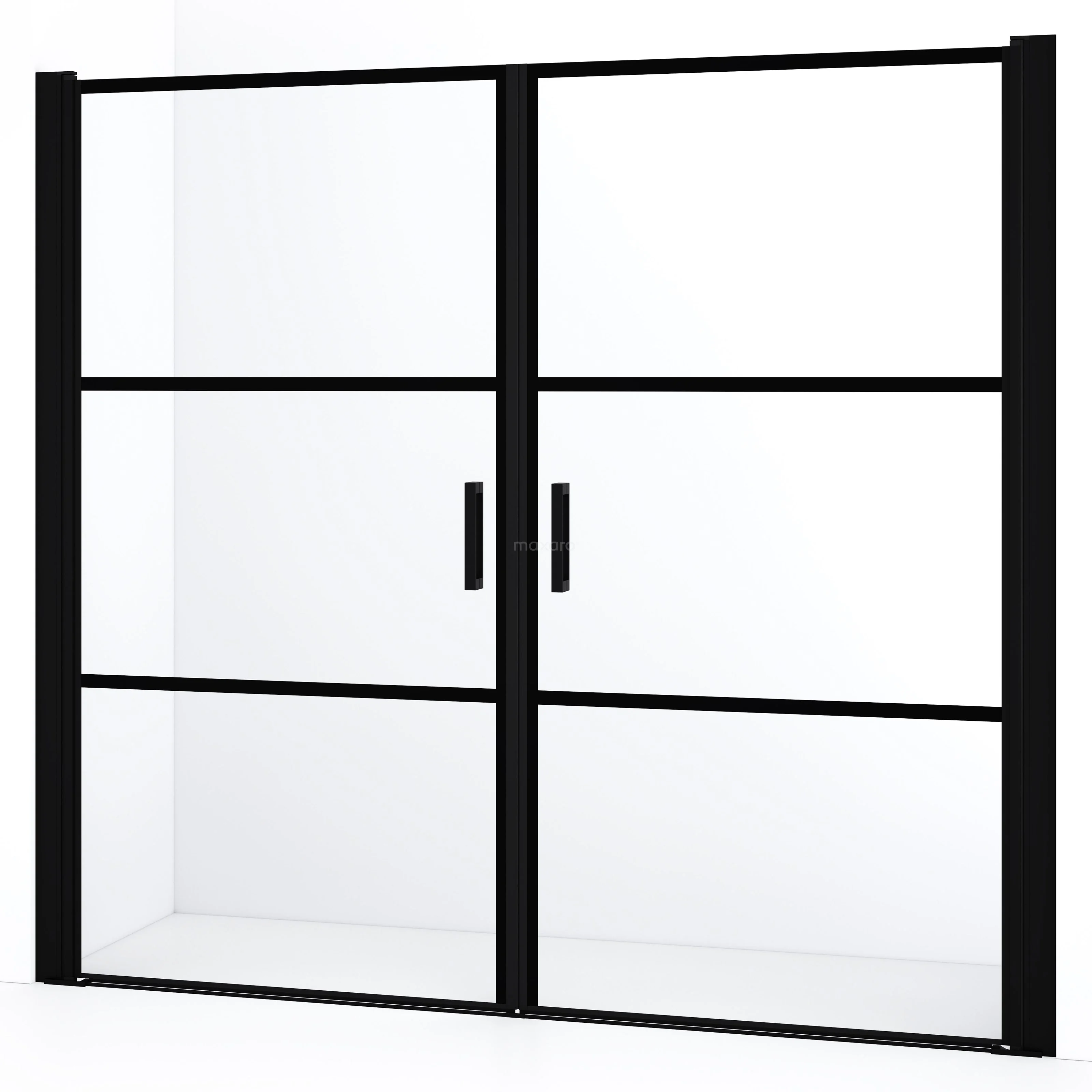 Diamond Duschtür | 180 cm Matt Schwarz Klar mit 4 schwarzen Streifen Pendeltür