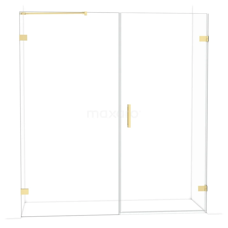 Die 185 cm lange Drehtür von Diamond ist ideal für den Abschluss Ihrer Duschnische. Sie hat ein raffiniertes und luxuriöses Design in glänzendem Hellgold und verfügt über hochwertige Wandscharniere und einen vertikalen Griff. Das Klarglas sorgt für ein großzügiges Raumgefühl. Die Verstellbarkeit macht es einfach, die Duschtür zu montieren. Die Gesamtbreite ist von 185,6 bis 185,9 cm verstellbar.