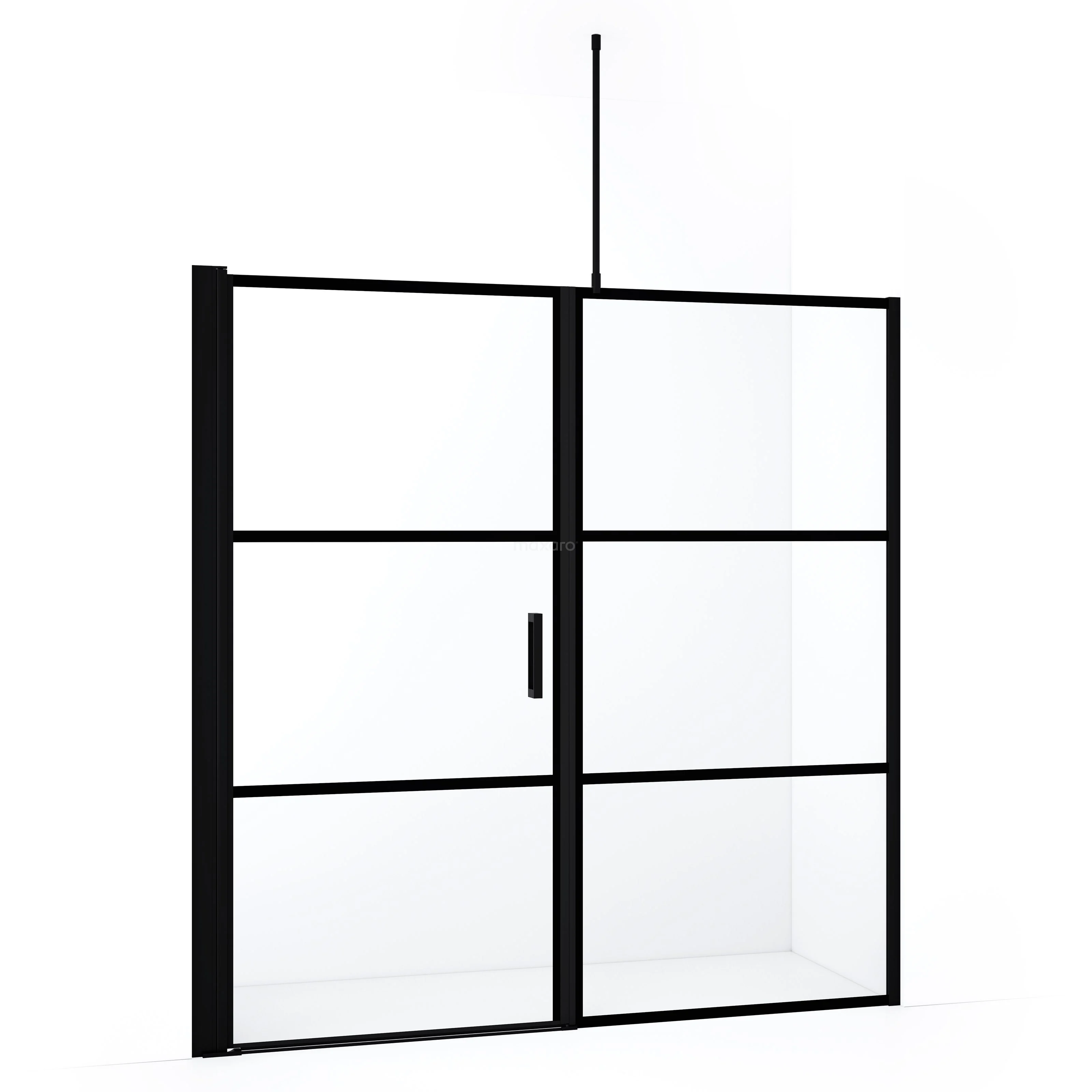 Diamond Duschtür | 190 cm Matt Schwarz Klar mit 4 schwarzen Streifen Drehtür
