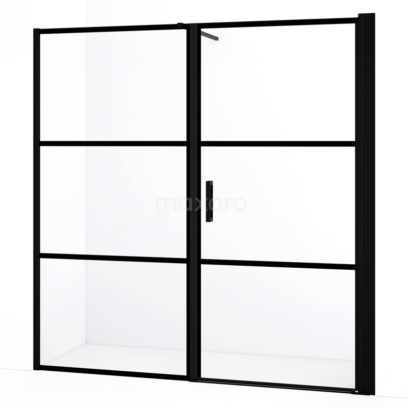 Diamond Duschtür | 190 cm Matt Schwarz Klar mit 4 schwarzen Streifen Drehtür