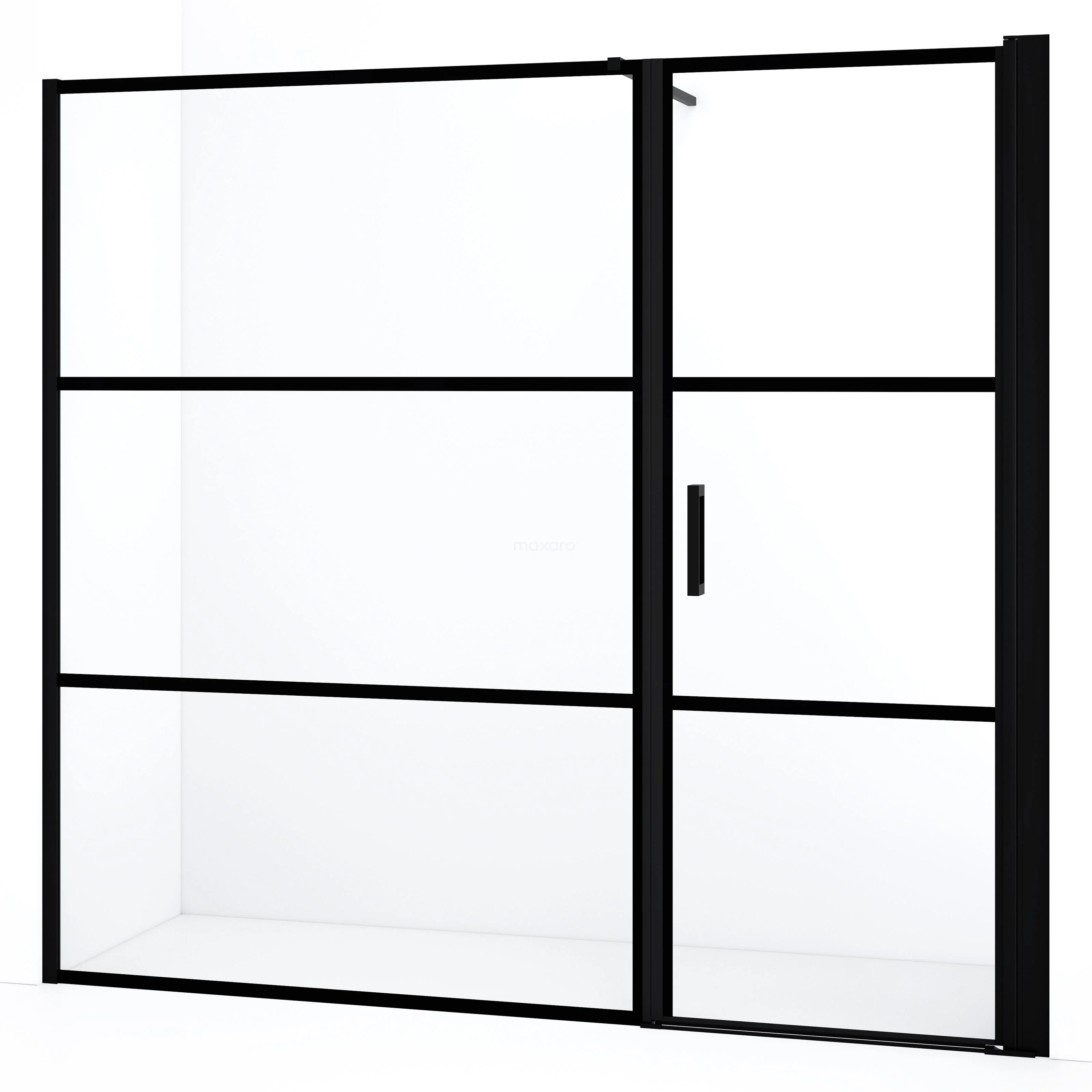Diamond Duschtür | 210 cm Matt Schwarz Klar mit 4 schwarzen Streifen Drehtür