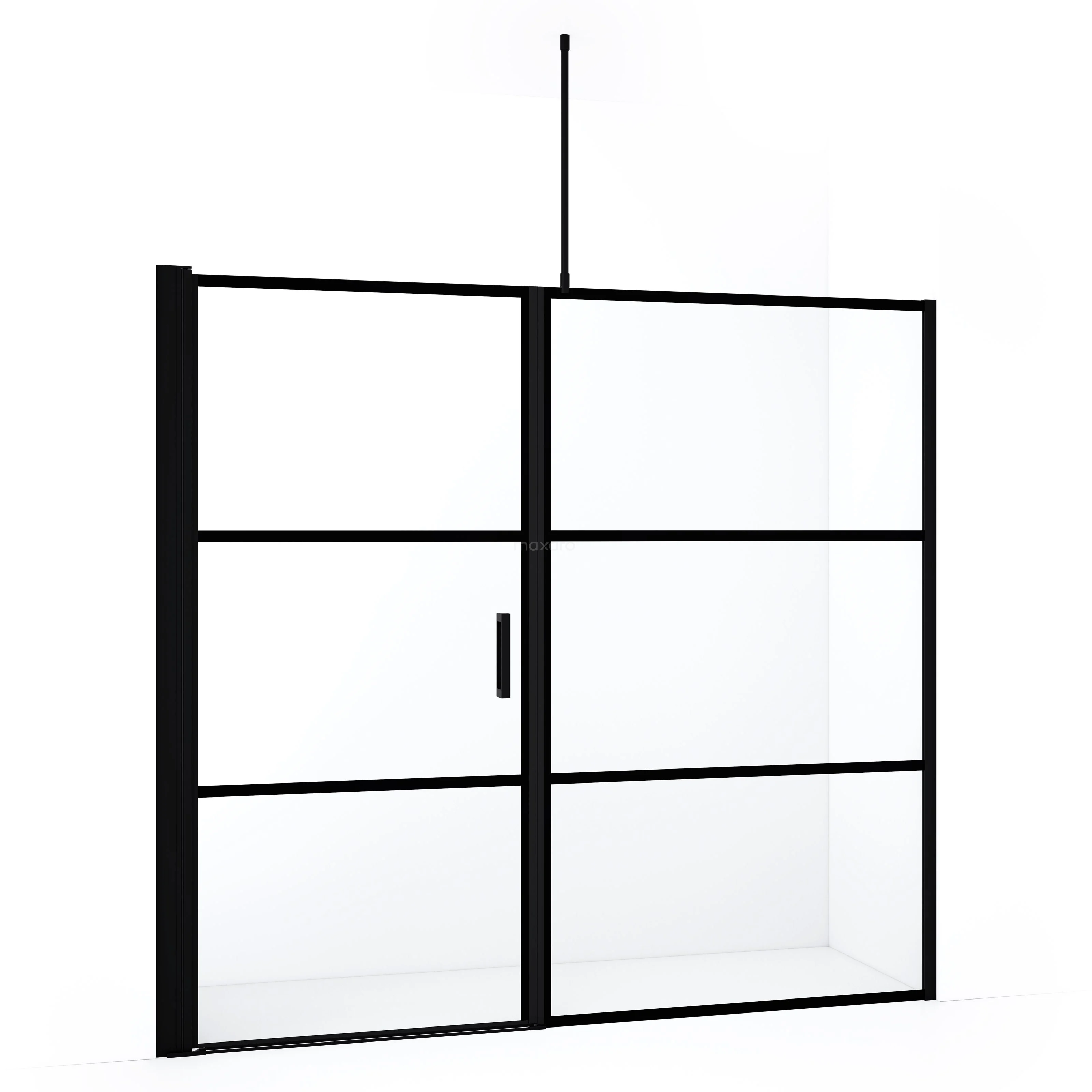 Diamond Duschtür | 210 cm Matt Schwarz Klar mit 4 schwarzen Streifen Drehtür