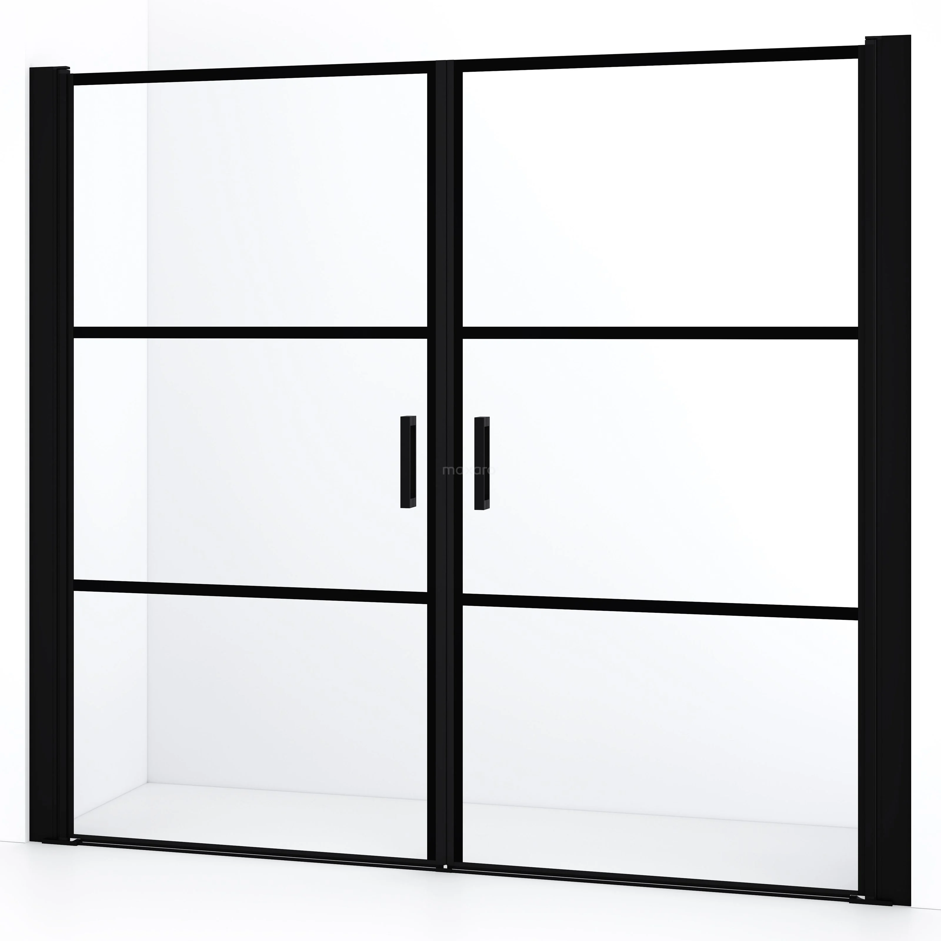 Diamond Duschtür | 210 cm Matt Schwarz Klar mit 4 schwarzen Streifen Pendeltür