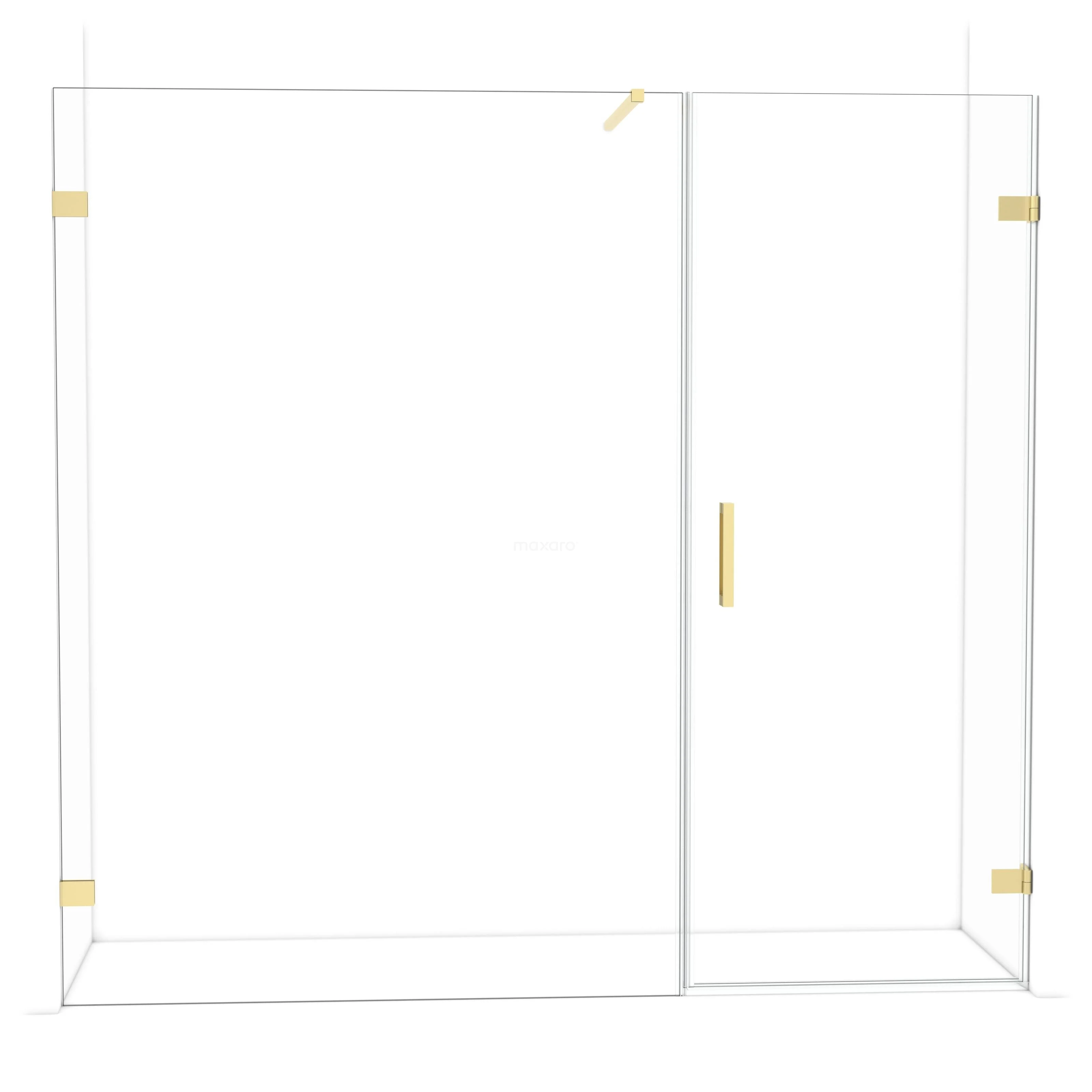 Die 215 cm lange Drehtür Diamond ist ideal zum Abschließen Ihres Duschbereichs. Sie hat ein raffiniertes und luxuriöses Design in glänzendem Hellgold und verfügt über hochwertige Wandscharniere und einen vertikalen Griff. Das Klarglas sorgt für ein großzügiges Raumgefühl. Die Verstellbarkeit macht es einfach, die Duschtür zu montieren. Die Gesamtbreite ist von 215,6 bis 215,9 cm verstellbar.