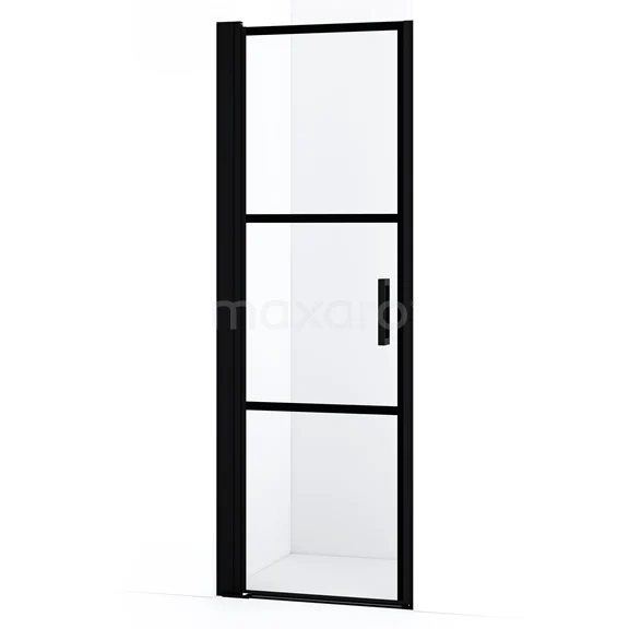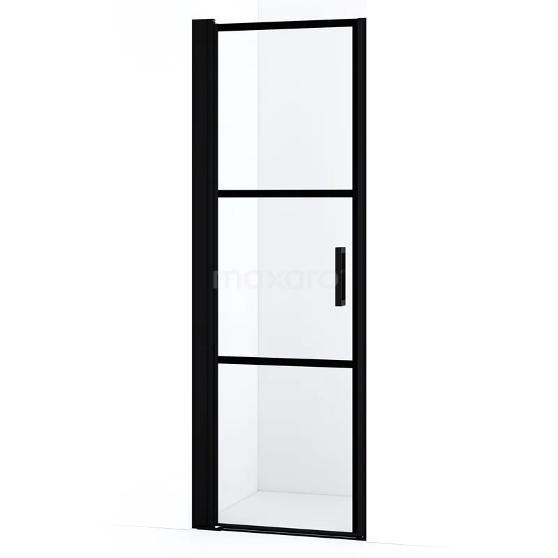 Diamond Duschtür | 60 cm Matt Schwarz Klar mit 4 schwarzen Streifen Drehtür