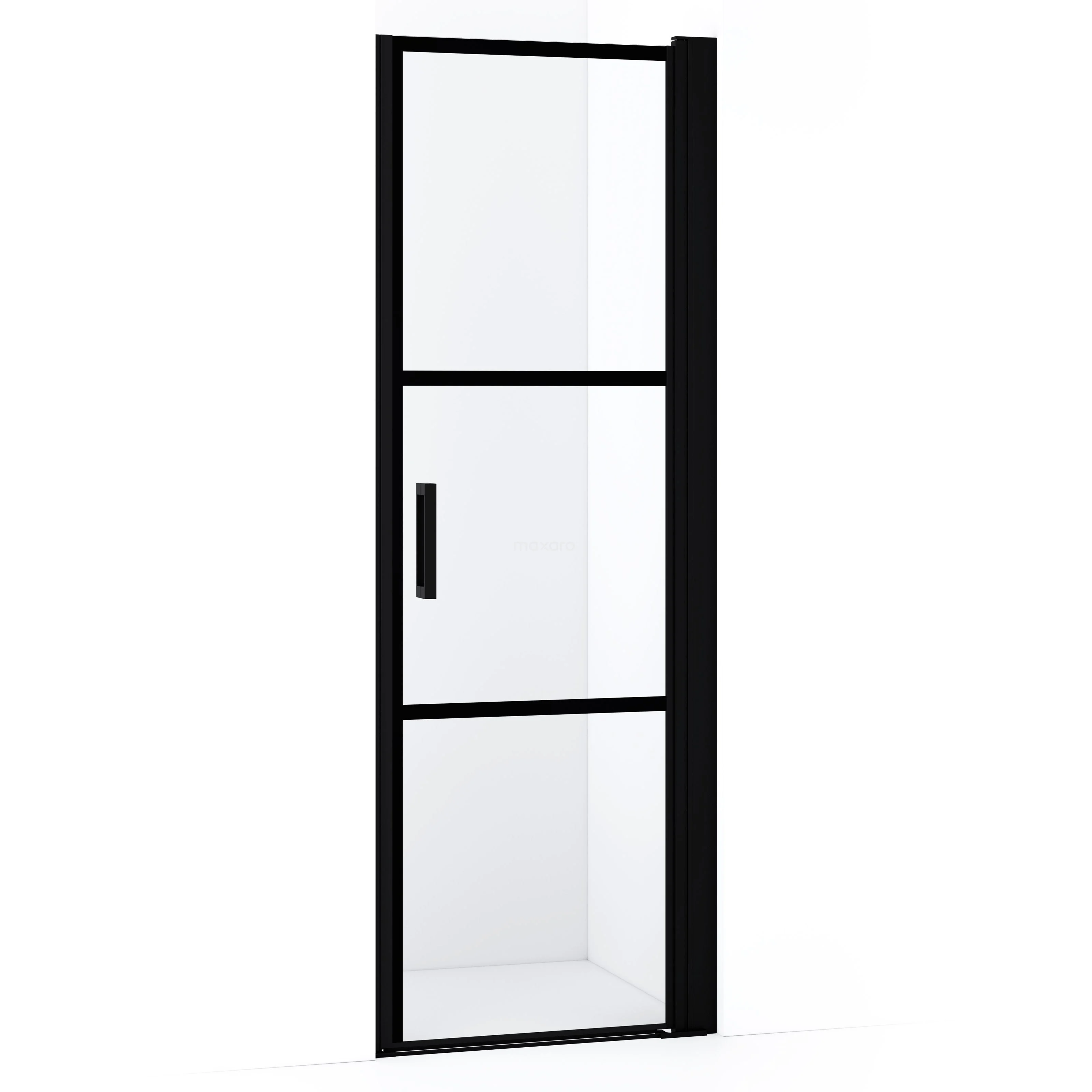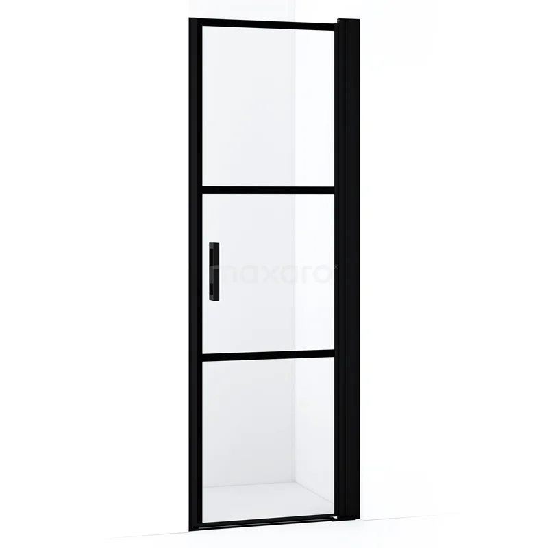 Diamond Duschtür | 60 cm Matt Schwarz Klar mit 4 schwarzen Streifen Drehtür