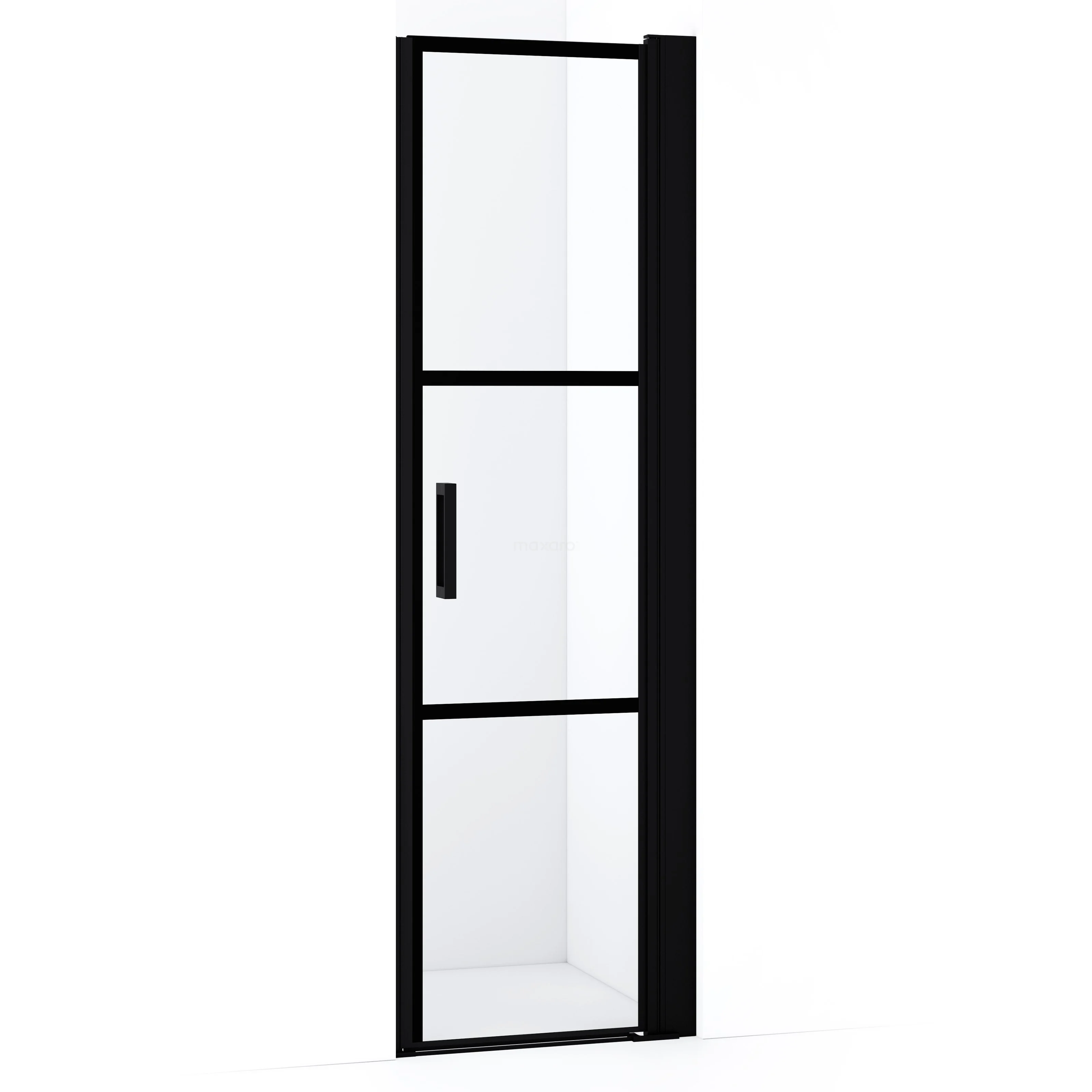 Diamond Duschtür | 60 cm Matt Schwarz Klar mit schwarzen Streifen Drehtür