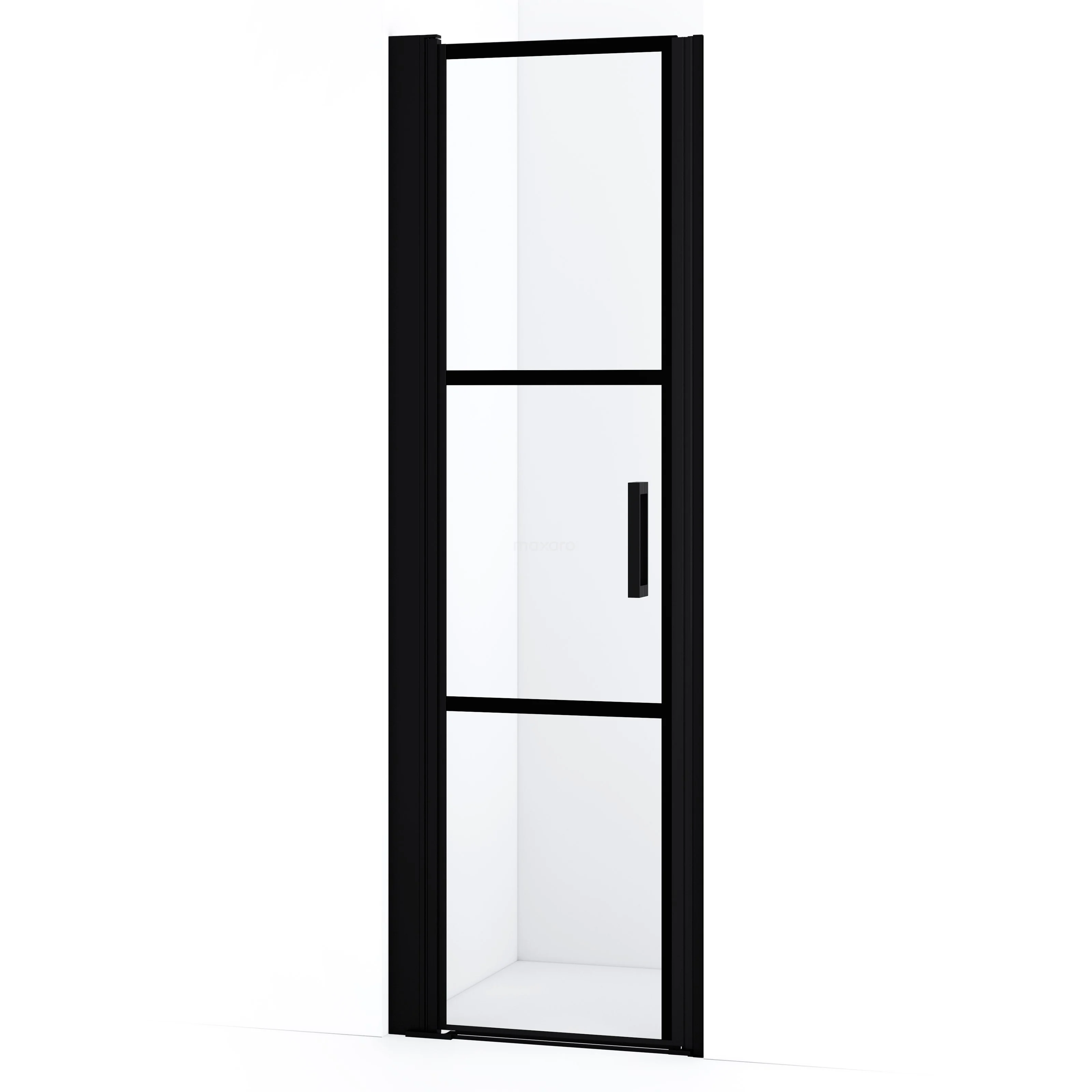 Diamond Duschtür | 60 cm Matt Schwarz Klar mit schwarzen Streifen Drehtür