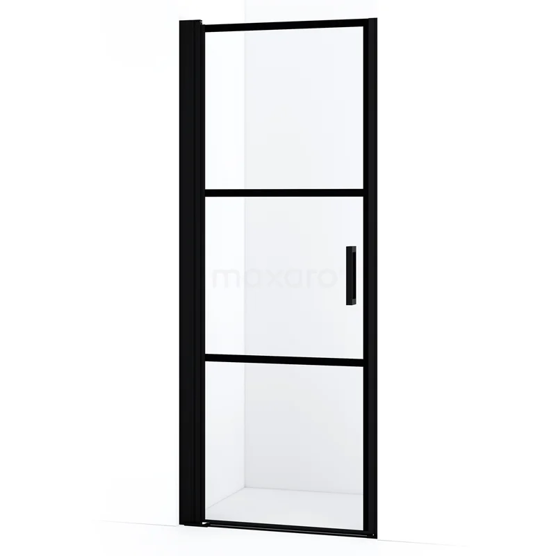Diamond Duschtür | 70 cm Matt Schwarz Klar mit 4 schwarzen Streifen Drehtür