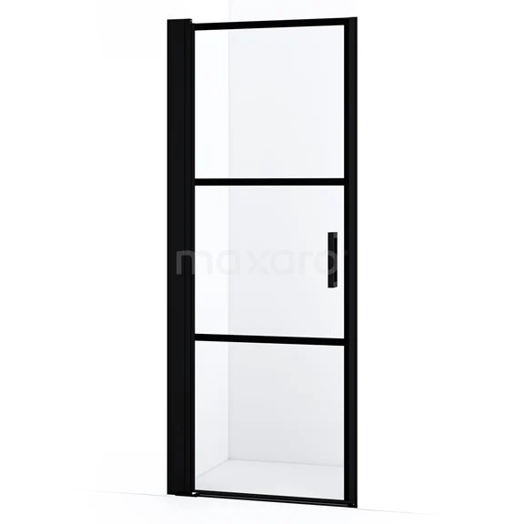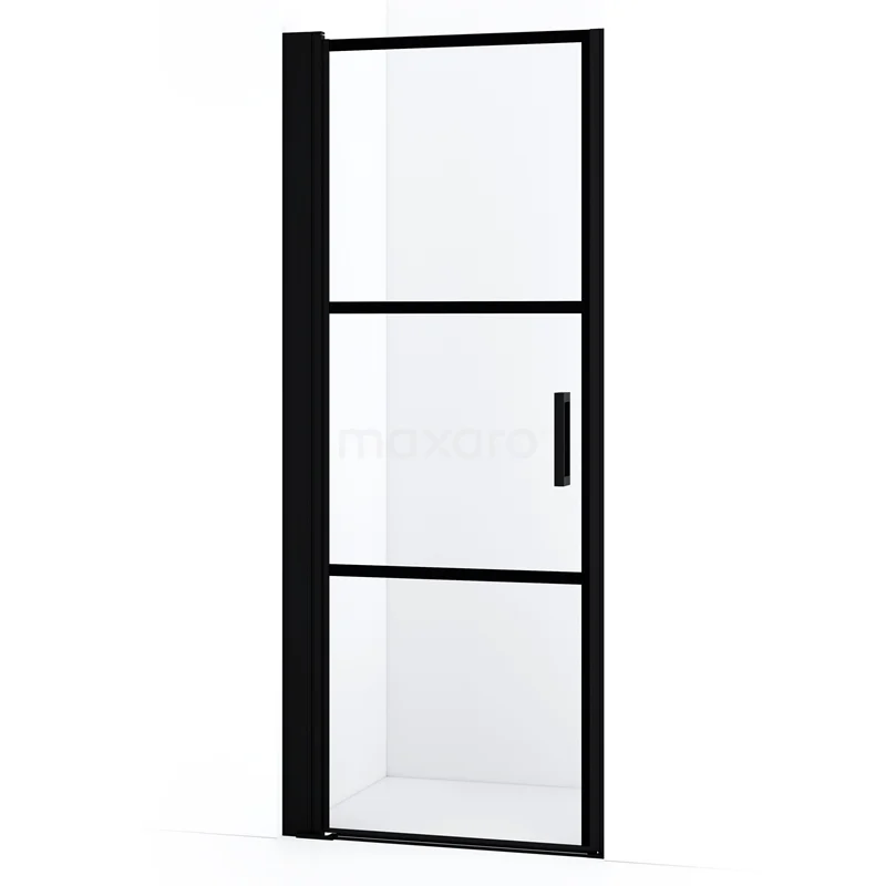 Diamond Duschtür | 75 cm Matt Schwarz Klar mit 4 schwarzen Streifen Drehtür