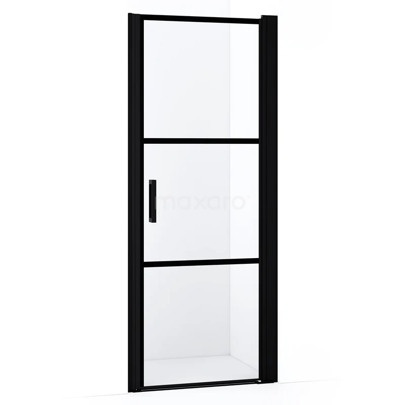 Diamond Duschtür | 75 cm Matt Schwarz Klar mit 4 schwarzen Streifen Drehtür