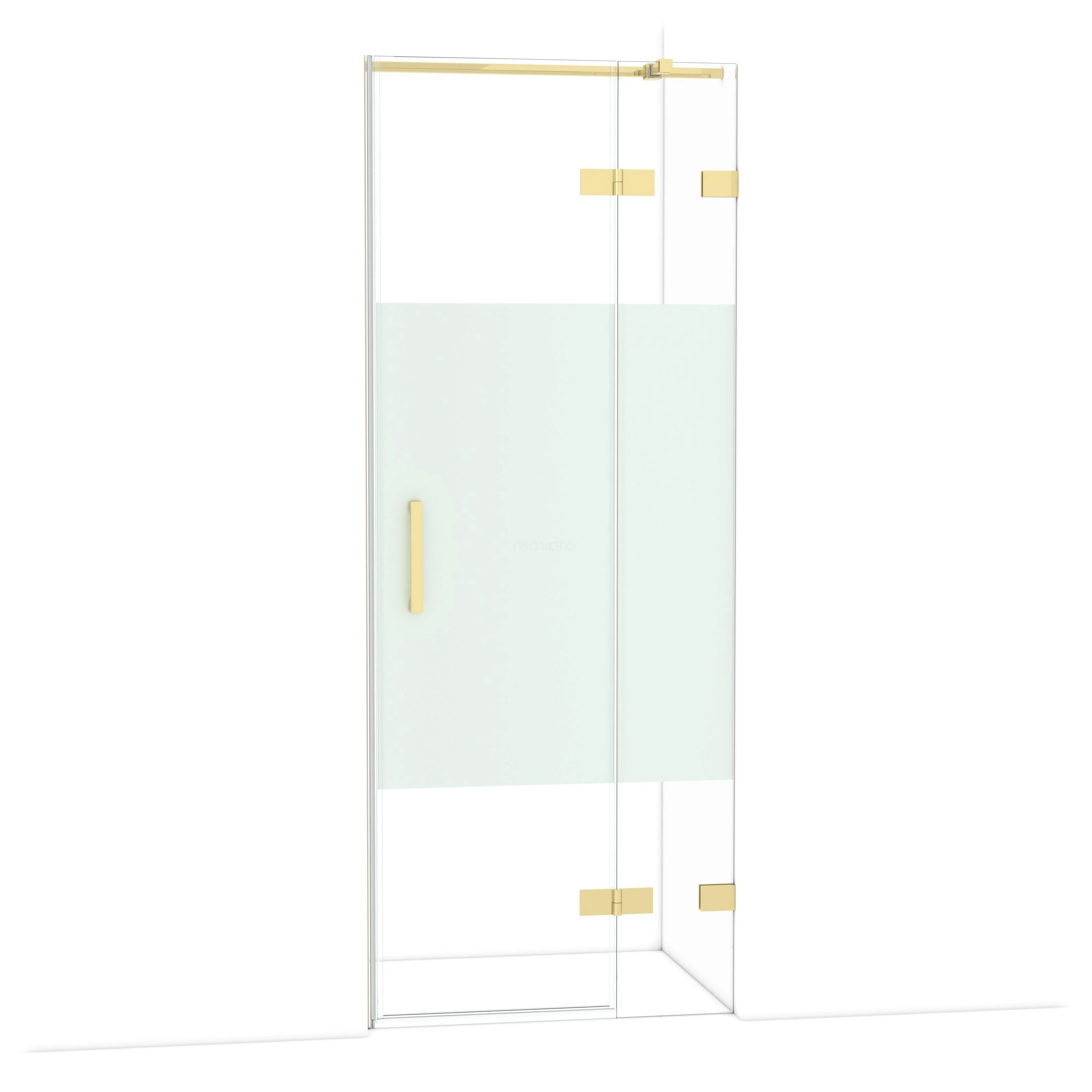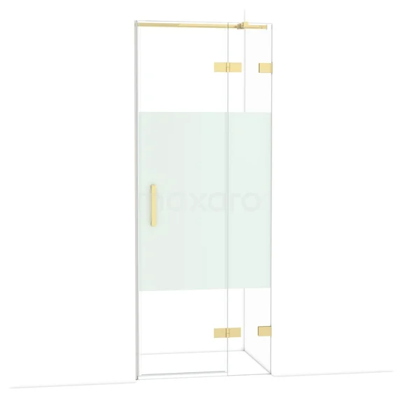 Die 80 cm lange Drehtür Diamond ist ideal für den Abschluss Ihrer Duschnische. Sie hat ein raffiniertes und luxuriöses Design in glänzendem Hellgold und verfügt über hochwertige Scharniere, Zweipunktbefestigung und einen vertikalen Griff. Das Klarglas mit mattem Streifen sorgt für mehr Privatsphäre. Die Verstellbarkeit macht es einfach, die Duschtür zu montieren. Die Gesamtbreite ist von 89,7 bis 90 cm verstellbar.