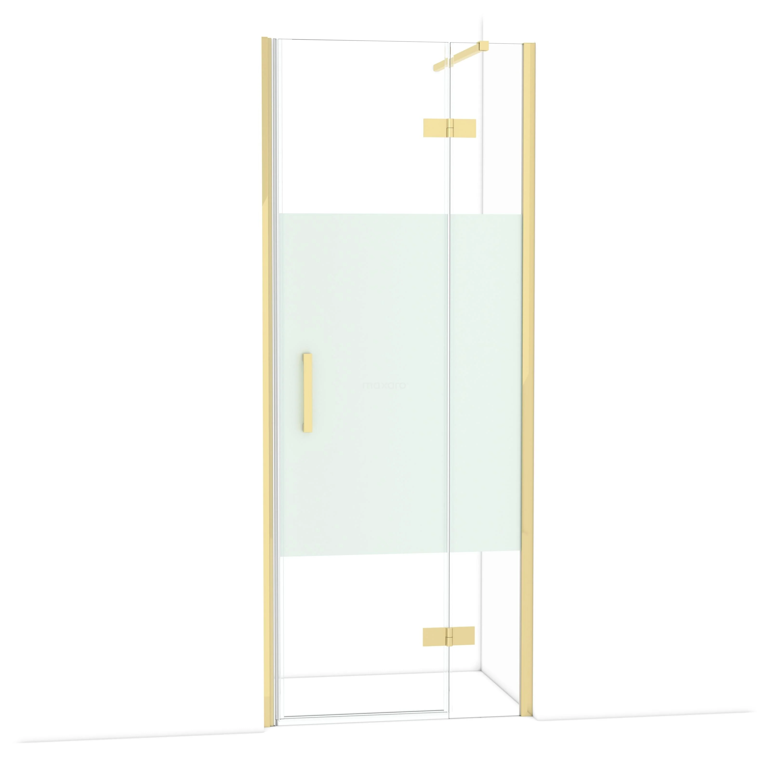 Diamond Duschtür | 80 cm Glänzendes Hellgold Klar mit matter Streifen Drehtür