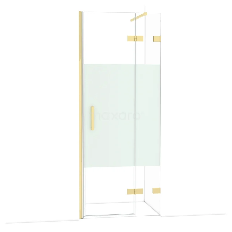 Diamond Duschtür | 80 cm Glänzendes Hellgold Klar mit matter Streifen Drehtür
