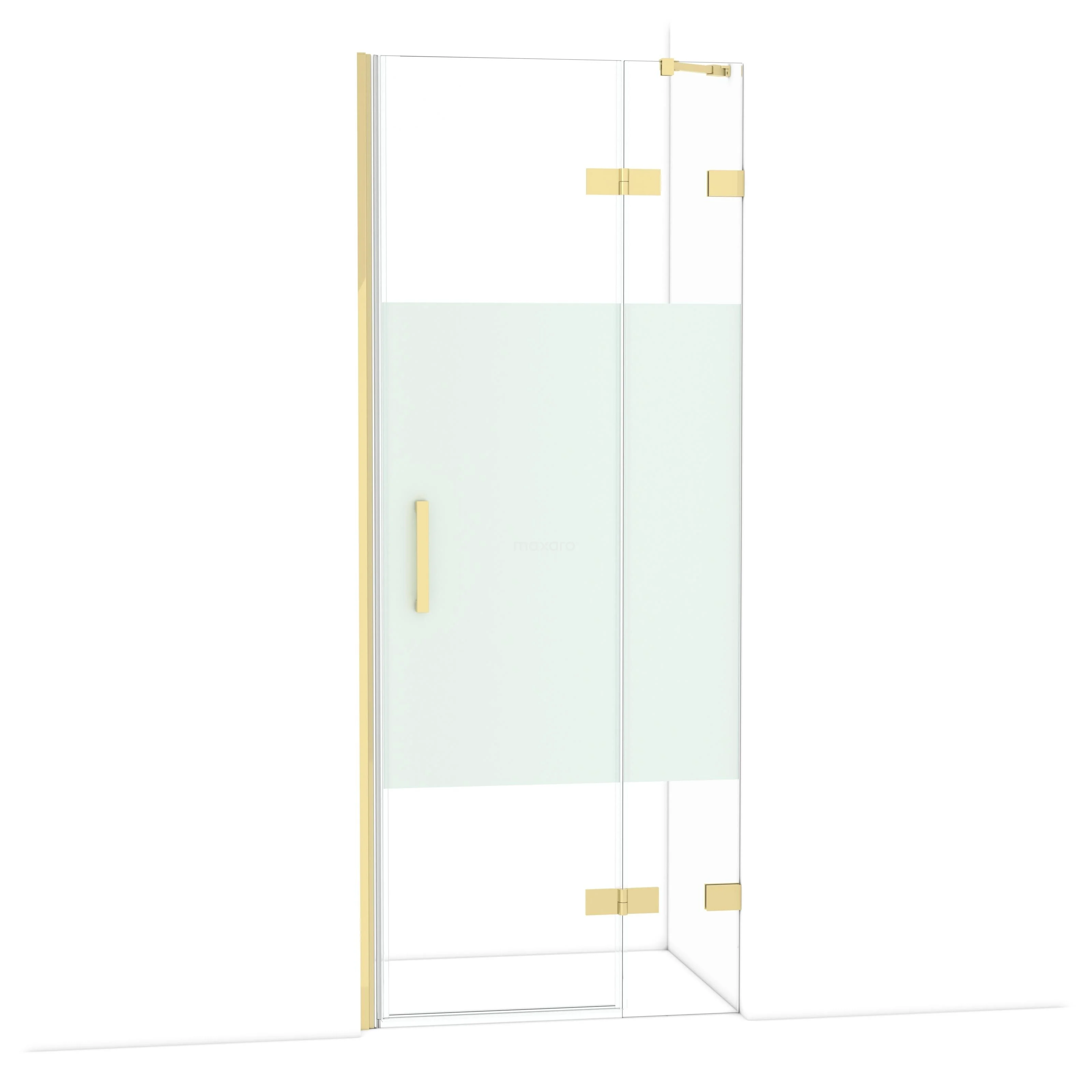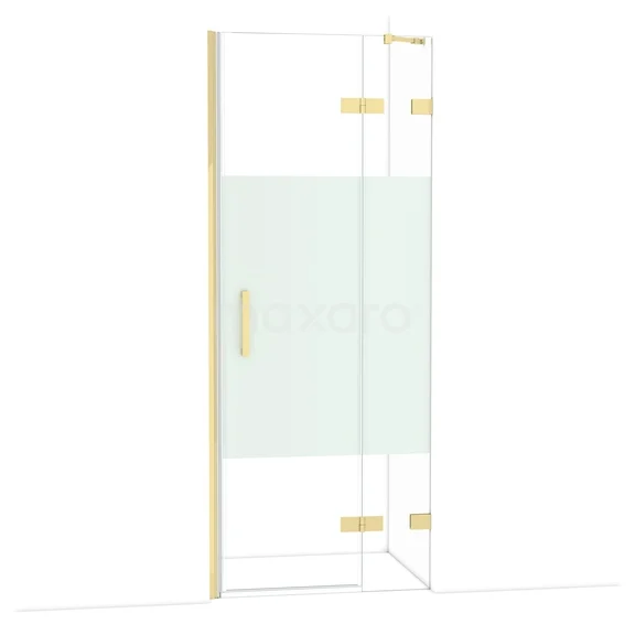 Diamond Duschtür | 80 cm Glänzendes Hellgold Klar mit matter Streifen Drehtür