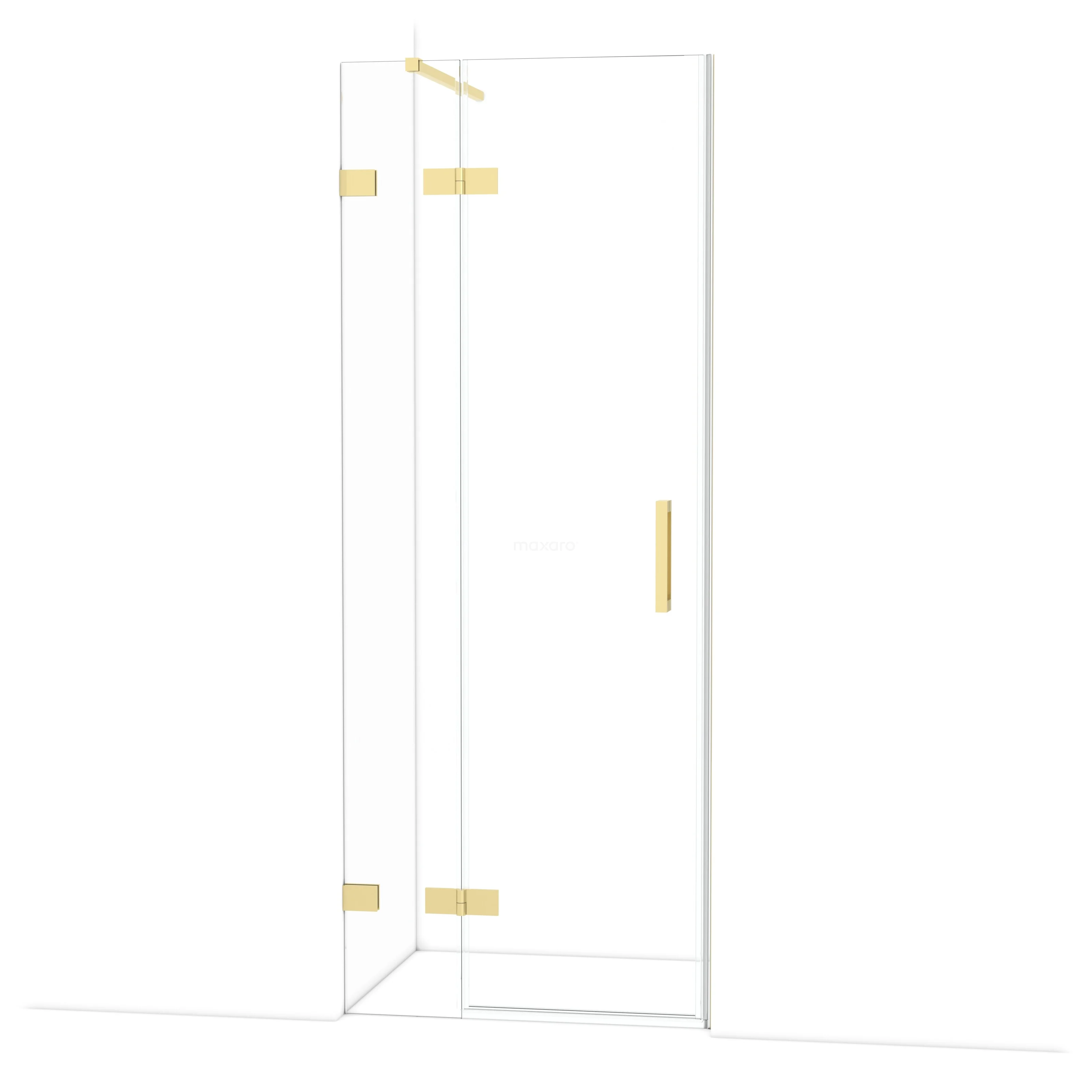 Die 80 cm lange Drehtür Diamond ist ideal für den Abschluss Ihrer Duschnische. Sie hat ein raffiniertes und luxuriöses Design in glänzendem Hellgold und verfügt über hochwertige Scharniere, eine Zweipunktbefestigung und einen vertikalen Griff. Das Klarglas sorgt für ein großzügiges Raumgefühl. Die Verstellbarkeit macht es einfach, die Duschtür zu montieren. Die Gesamtbreite ist von 79,7 bis 80 cm verstellbar.