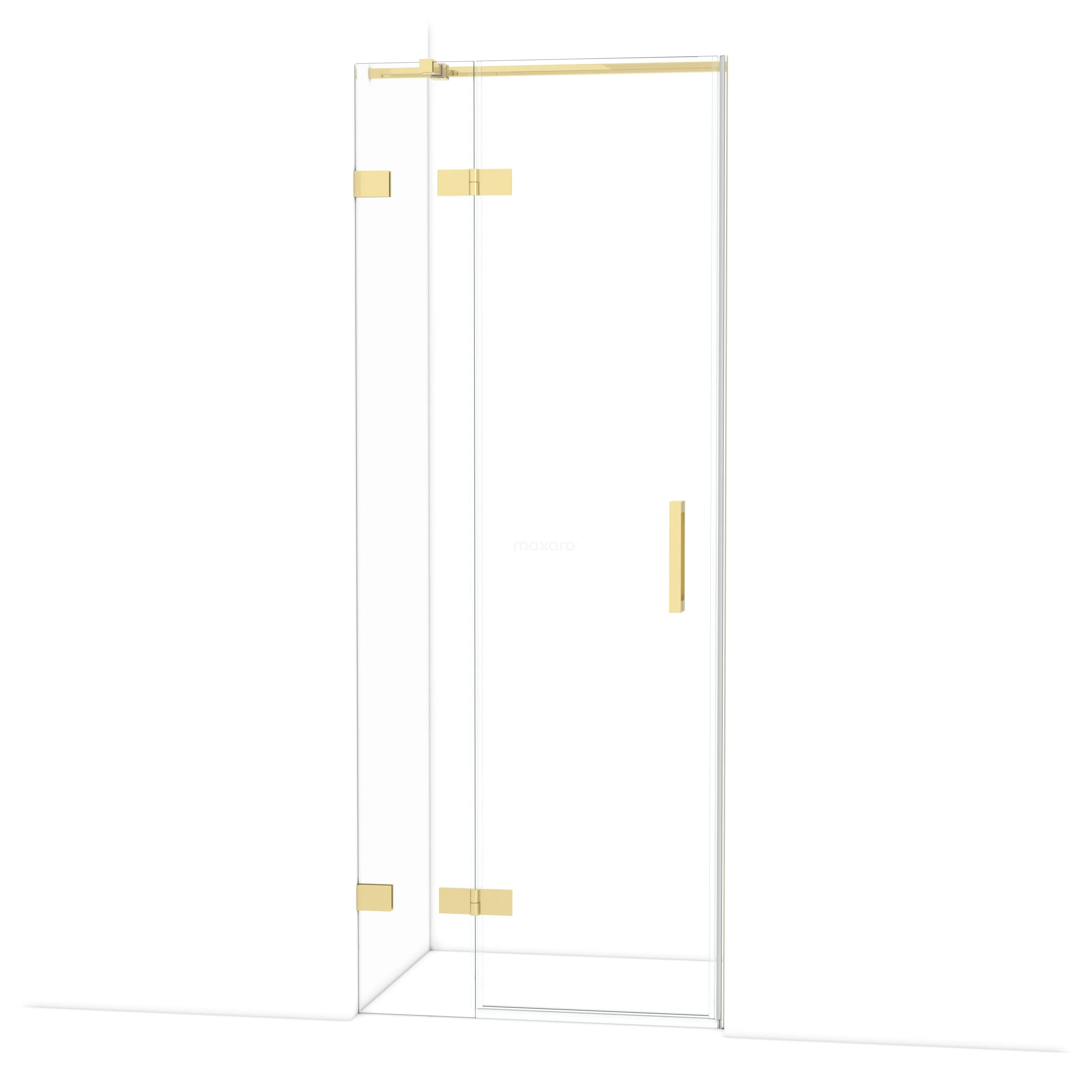 Die 80 cm lange Drehtür Diamond ist ideal für den Abschluss Ihrer Duschnische. Sie hat ein raffiniertes und luxuriöses Design in glänzendem Hellgold und verfügt über hochwertige Scharniere, eine Zweipunktbefestigung und einen vertikalen Griff. Das Klarglas sorgt für ein großzügiges Raumgefühl. Die Verstellbarkeit macht es einfach, die Duschtür zu montieren. Die Gesamtbreite ist von 79,7 bis 80 cm verstellbar.