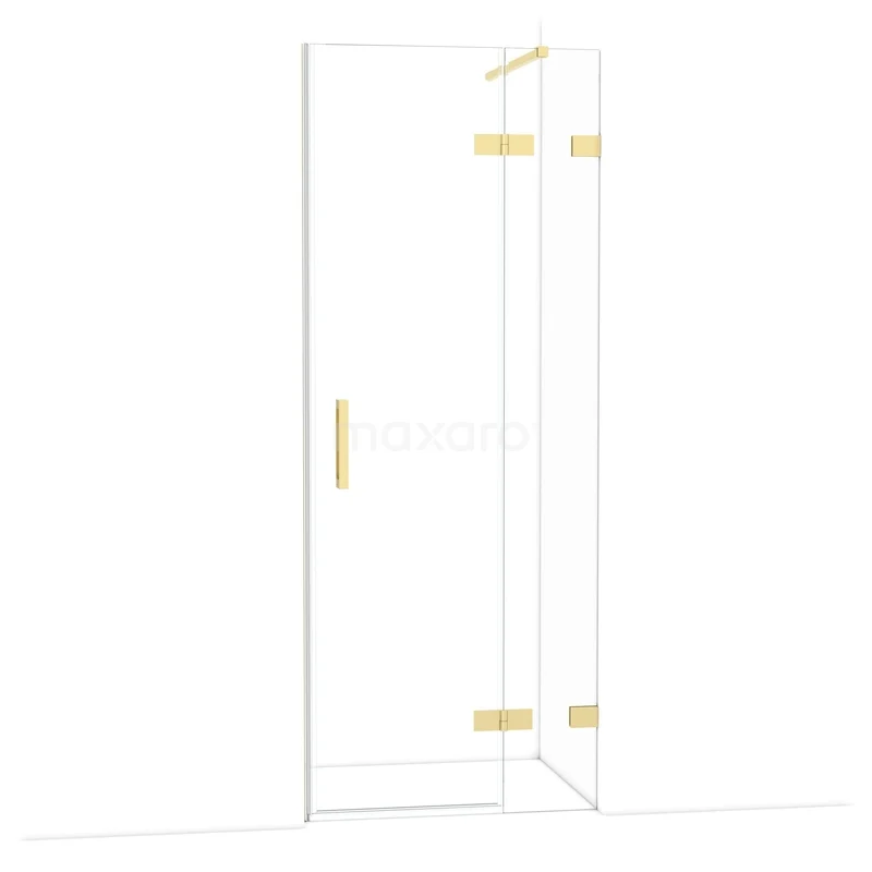 Die 80 cm lange Drehtür Diamond ist ideal für den Abschluss Ihrer Duschnische. Sie hat ein raffiniertes und luxuriöses Design in glänzendem Hellgold und verfügt über hochwertige Scharniere, eine Zweipunktbefestigung und einen vertikalen Griff. Das Klarglas sorgt für ein großzügiges Raumgefühl. Die Verstellbarkeit macht es einfach, die Duschtür zu montieren. Die Gesamtbreite ist von 79,7 bis 80 cm verstellbar.