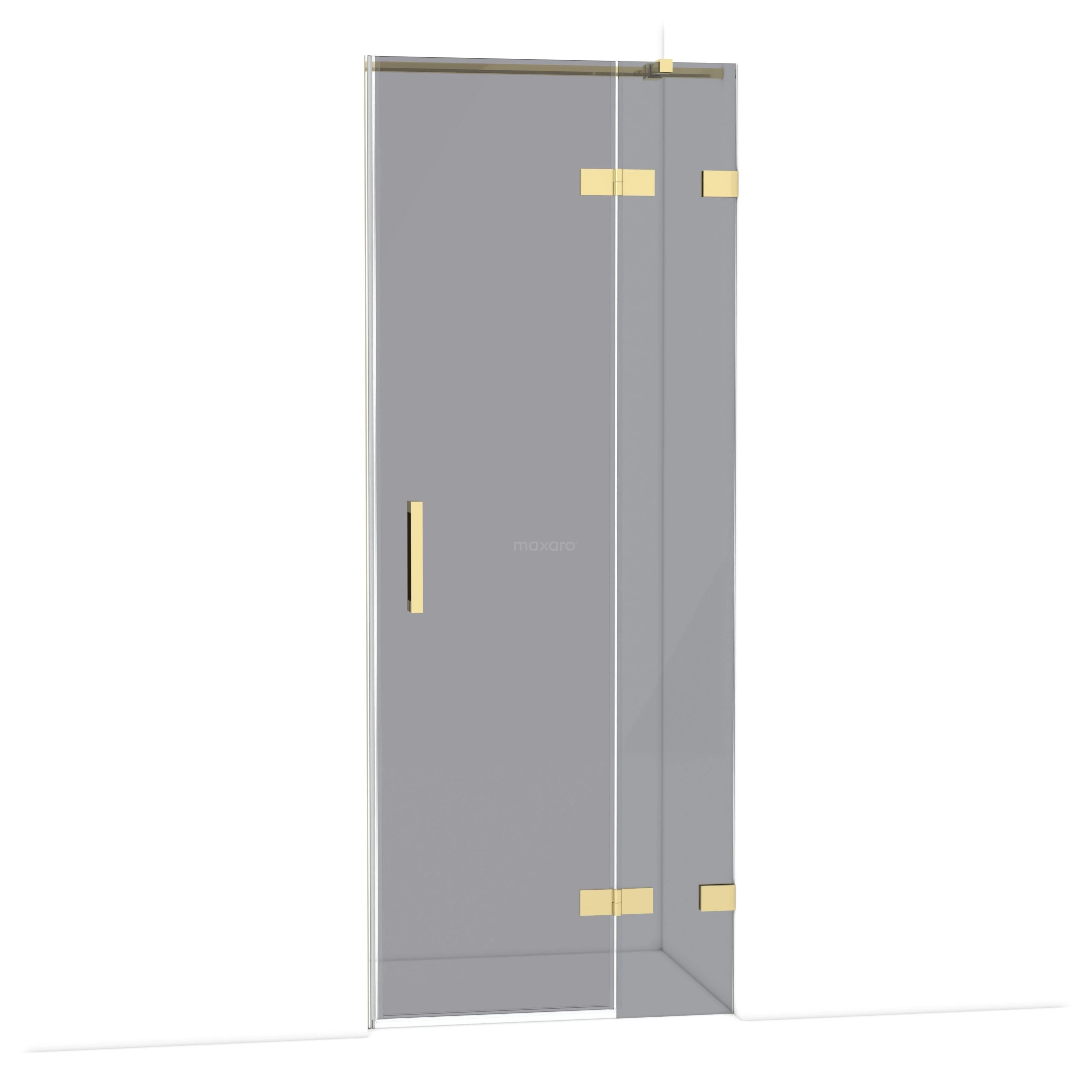 Die 80 cm lange Drehtür Diamond ist ideal für den Abschluss Ihrer Duschnische. Sie hat ein raffiniertes und luxuriöses Design in glänzendem Hellgold und verfügt über hochwertige Scharniere, eine Zweipunktbefestigung und einen vertikalen Griff. Das Rauchglas sorgt für eine schicke Optik. Die Verstellbarkeit macht es einfach, die Duschtür zu montieren. Die Gesamtbreite ist von 89,7 bis 90 cm verstellbar.
