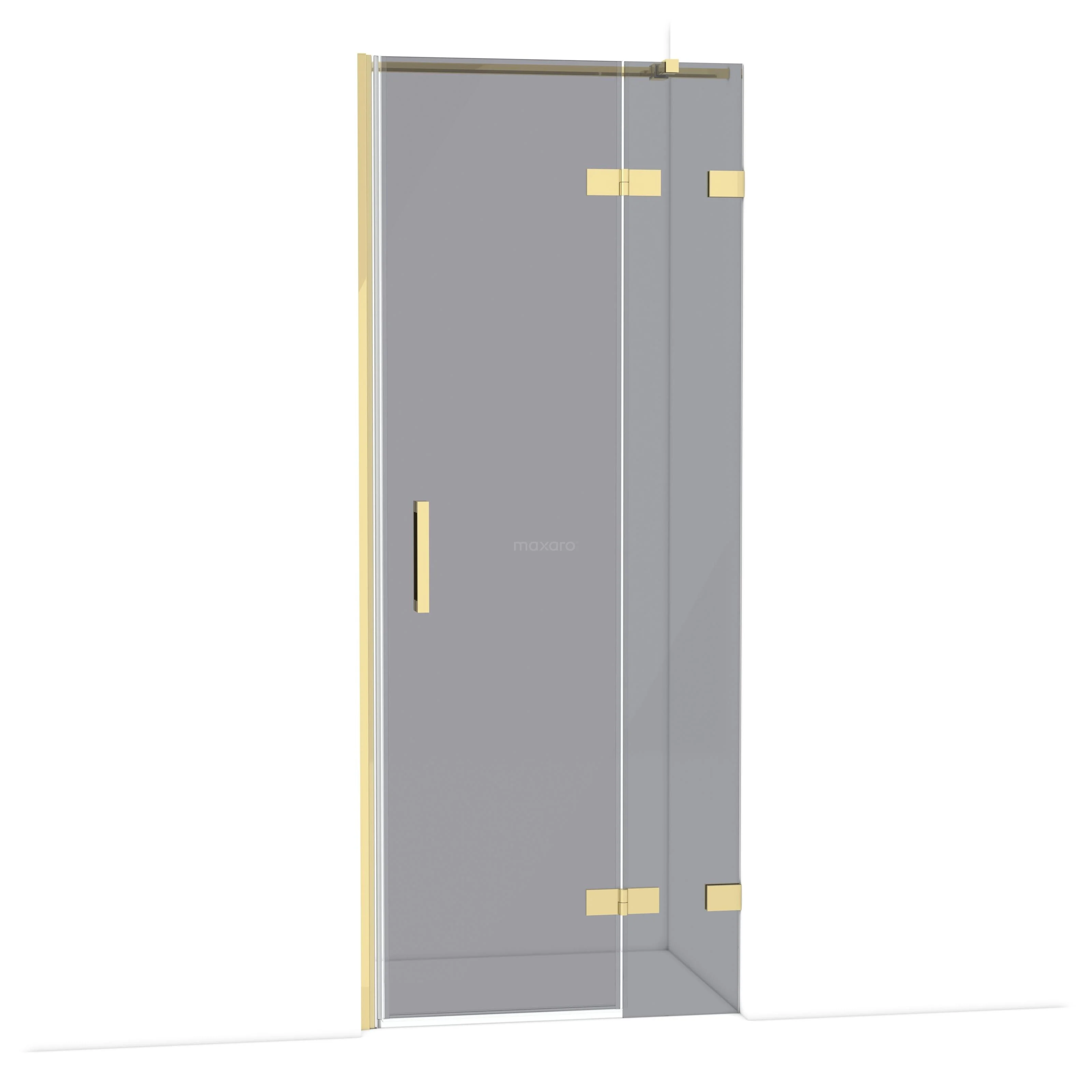 Die 80 cm lange Drehtür Diamond ist ideal für den Abschluss Ihrer Duschnische. Sie hat ein raffiniertes und luxuriöses Design in glänzendem Hellgold und verfügt über hochwertige Scharniere, eine Zweipunktbefestigung und einen vertikalen Griff. Das Rauchglas sorgt für eine schicke Optik. Die Verstellbarkeit macht es einfach, die Duschtür zu montieren. Die Gesamtbreite ist von 81,7 bis 82,7 cm verstellbar.