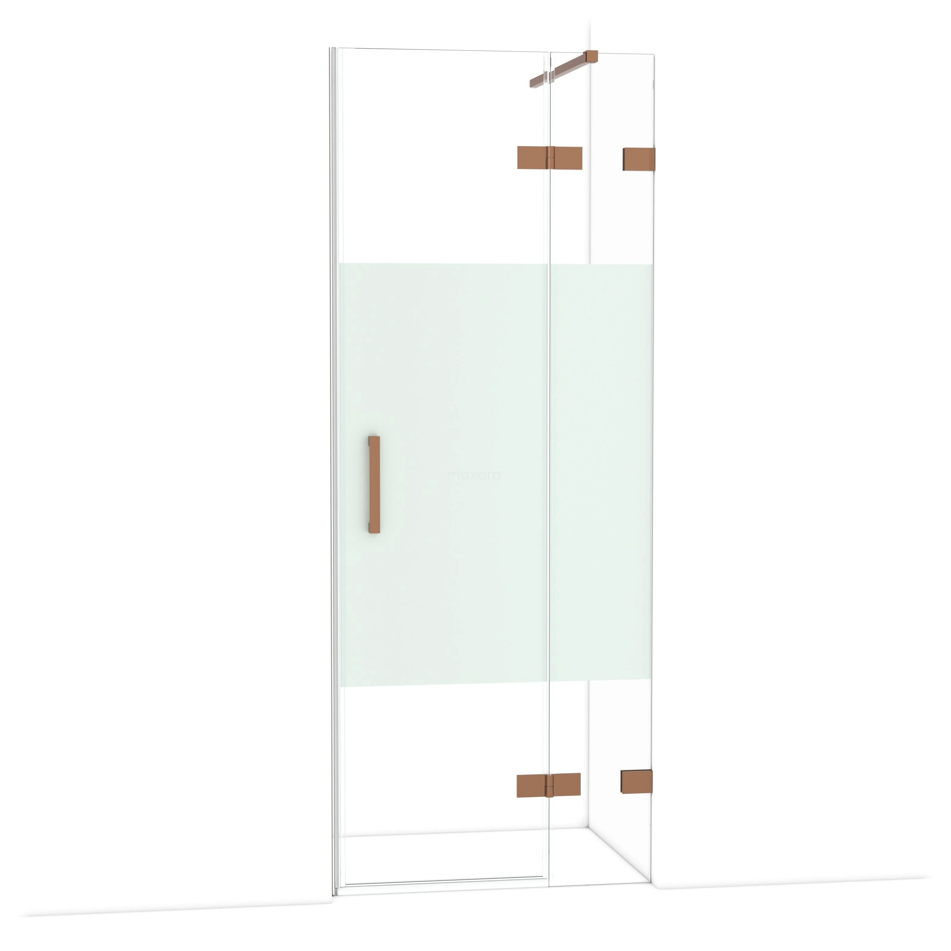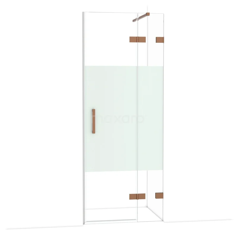 Die 80 cm lange Drehtür von Diamond ist ideal, um Ihren Duschbereich abzuschließen. Sie hat ein markantes Design aus glänzendem Kupfer und ist mit hochwertigen Scharnieren, einer Zweipunktbefestigung und einem vertikalen Griff ausgestattet. Das Klarglas mit mattem Streifen sorgt für mehr Privatsphäre. Durch die Verstellbarkeit lässt sich die Duschtür leicht anpassen. Die Gesamtbreite ist von 79,7 bis 80 cm verstellbar.