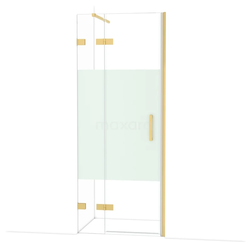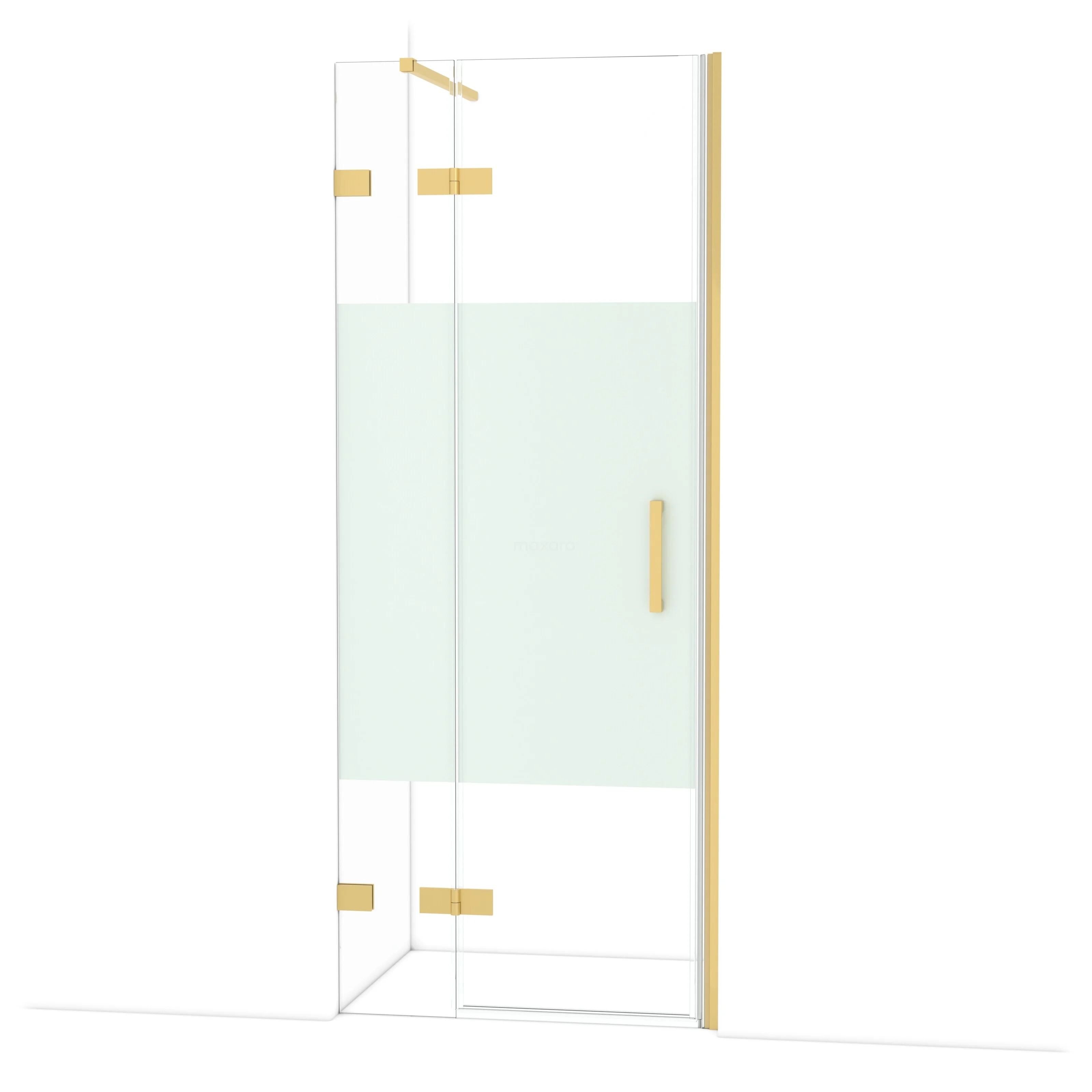 Die Diamond-Drehtür von 80 cm ist ideal, um deine Duschnis abzuschließen. Dieses Exemplar hat ein luxuriöses Design aus Gold und ist mit hochwertigen Scharnieren, einer Zweipunktbefestigung und einem vertikalen Griff ausgestattet. Das Klarglas mit matter Streifen sorgt für mehr Privatsphäre. Durch die Verstellbarkeit lässt sich die Duschtür leicht anpassen. Die Gesamtbreite ist von 81,7 bis 82,7 cm verstellbar.