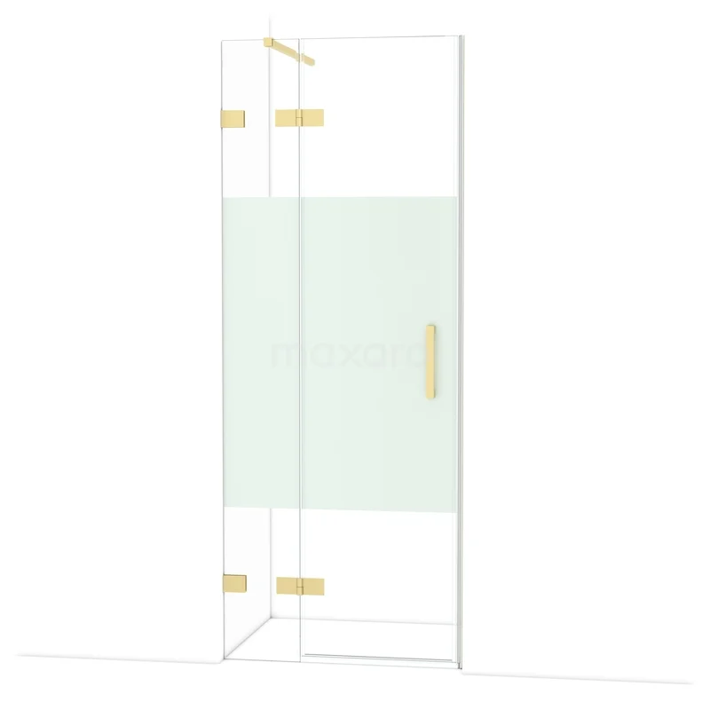 Die 80 cm lange Drehtür von Diamond ist ideal für den Abschluss Ihrer Duschnische. Sie hat eine hellgoldene Oberfläche und ist mit hochwertigen Scharnieren, einer Zwei-Punkt-Befestigung und einem vertikalen Griff ausgestattet. Das Klarglas mit mattiertem Streifen sorgt für mehr Privatsphäre. Die Verstellbarkeit macht es einfach, die Duschtür zu montieren. Die Gesamtbreite ist von 79,7 bis 80 cm verstellbar.
