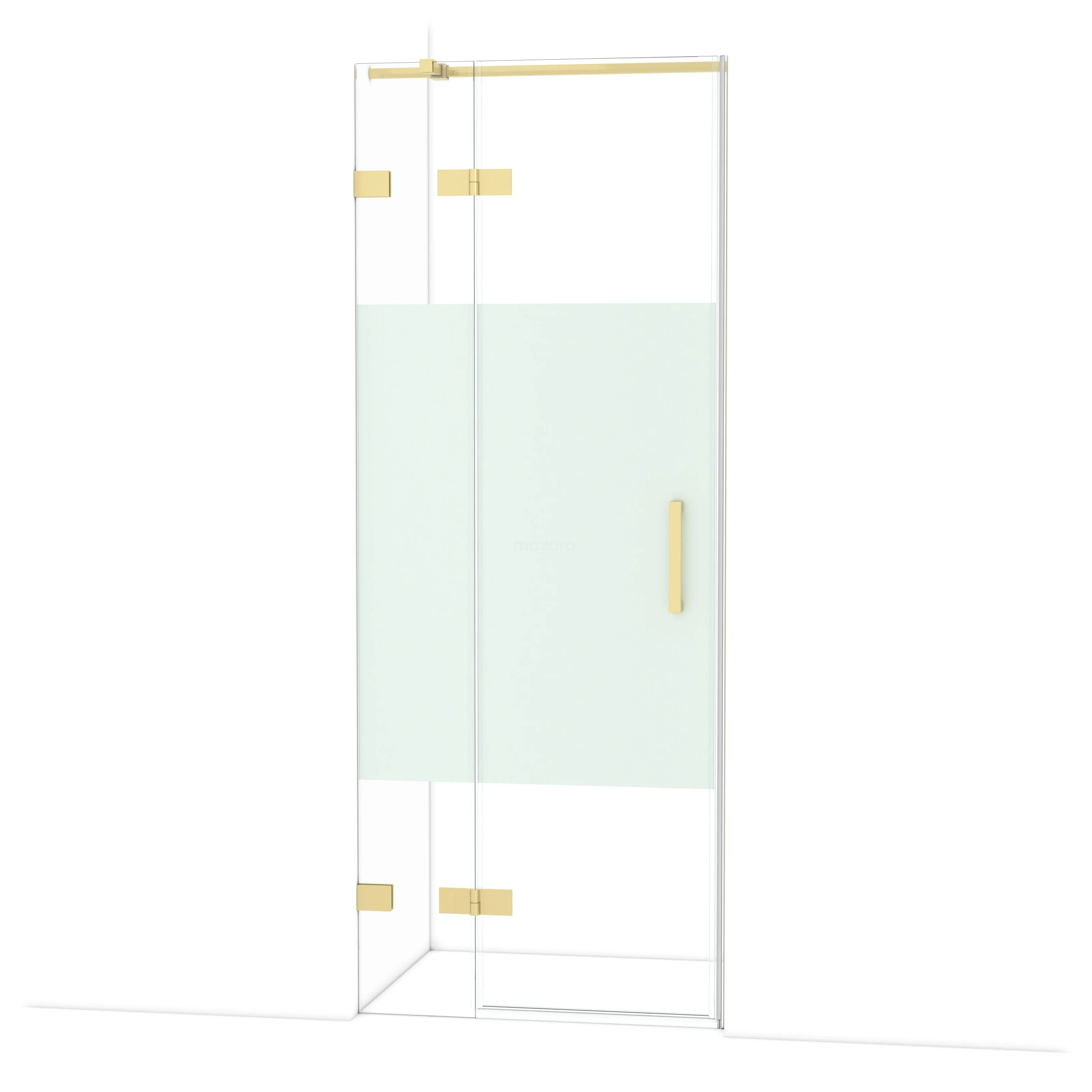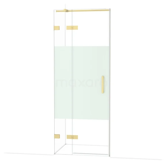 Die 80 cm lange Drehtür Diamond ist ideal für den Abschluss Ihrer Duschnische. Sie hat eine hellgoldene Oberfläche und ist mit hochwertigen Scharnieren, einer Zwei-Punkt-Befestigung und einem vertikalen Griff ausgestattet. Das Klarglas mit mattiertem Streifen sorgt für mehr Privatsphäre. Die Verstellbarkeit macht es einfach, die Duschtür zu montieren. Die Gesamtbreite ist von 79,7 bis 80 cm verstellbar.
