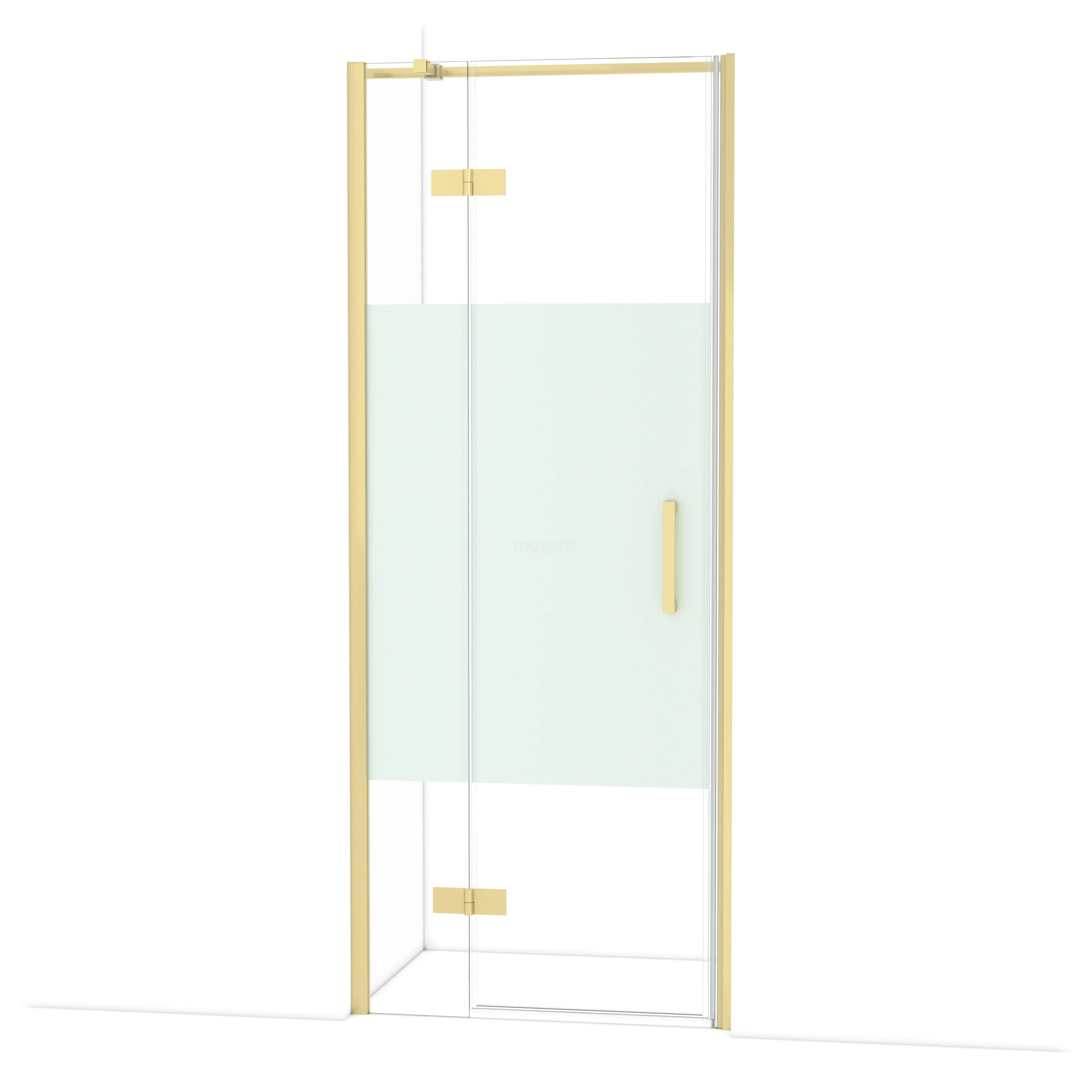 Diamond Duschtür | 80 cm Helles Gold Klar mit matter Streifen Drehtür