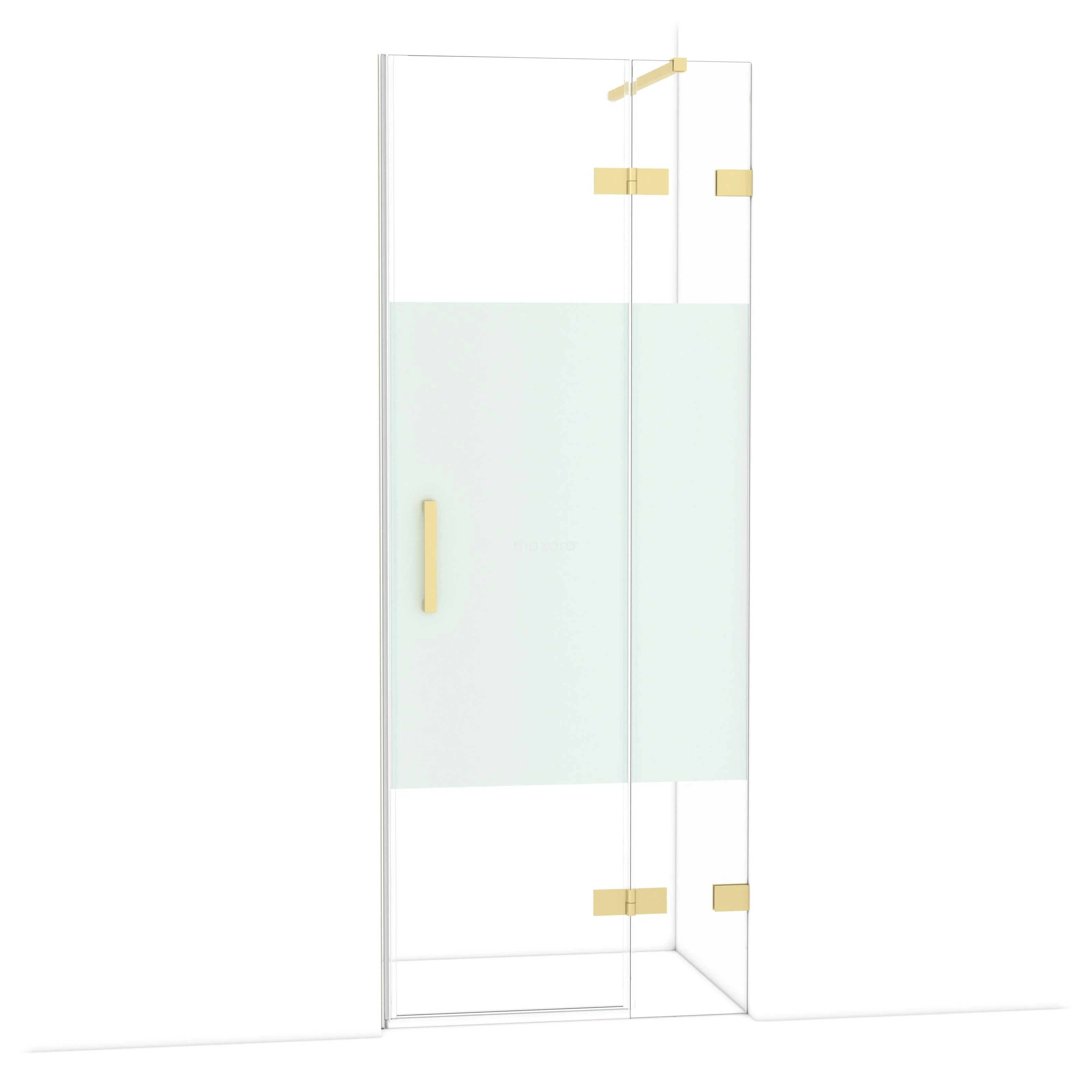 Die 80 cm lange Drehtür von Diamond ist ideal für den Abschluss Ihrer Duschnische. Sie hat eine hellgoldene Oberfläche und ist mit hochwertigen Scharnieren, einer Zwei-Punkt-Befestigung und einem vertikalen Griff ausgestattet. Das Klarglas mit mattiertem Streifen sorgt für mehr Privatsphäre. Die Verstellbarkeit macht es einfach, die Duschtür zu montieren. Die Gesamtbreite ist von 79,7 bis 80 cm verstellbar.
