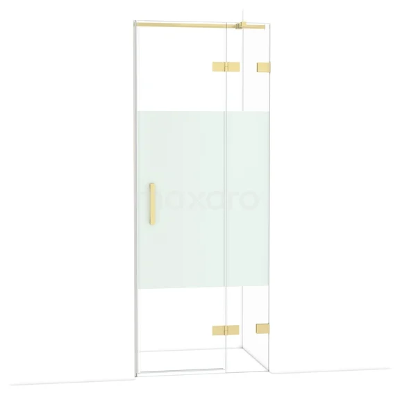 Die 80 cm lange Drehtür Diamond ist ideal für den Abschluss Ihrer Duschnische. Sie hat eine hellgoldene Oberfläche und ist mit hochwertigen Scharnieren, einer Zwei-Punkt-Befestigung und einem vertikalen Griff ausgestattet. Das Klarglas mit mattiertem Streifen sorgt für mehr Privatsphäre. Die Verstellbarkeit macht es einfach, die Duschtür zu montieren. Die Gesamtbreite ist von 89,7 bis 90 cm verstellbar.
